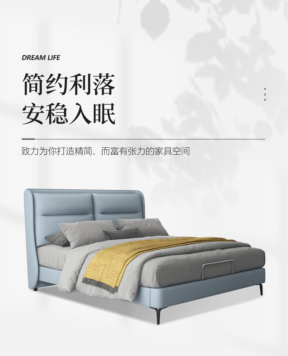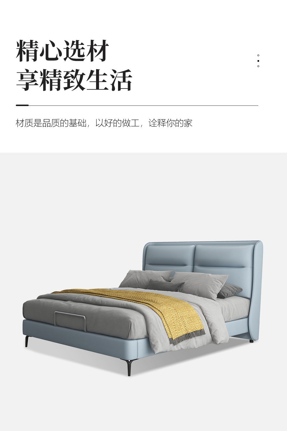 e家优选 轻奢 接触面头层牛皮 松木 实木多层板 高回弹海绵 蓝色 1.8米皮床