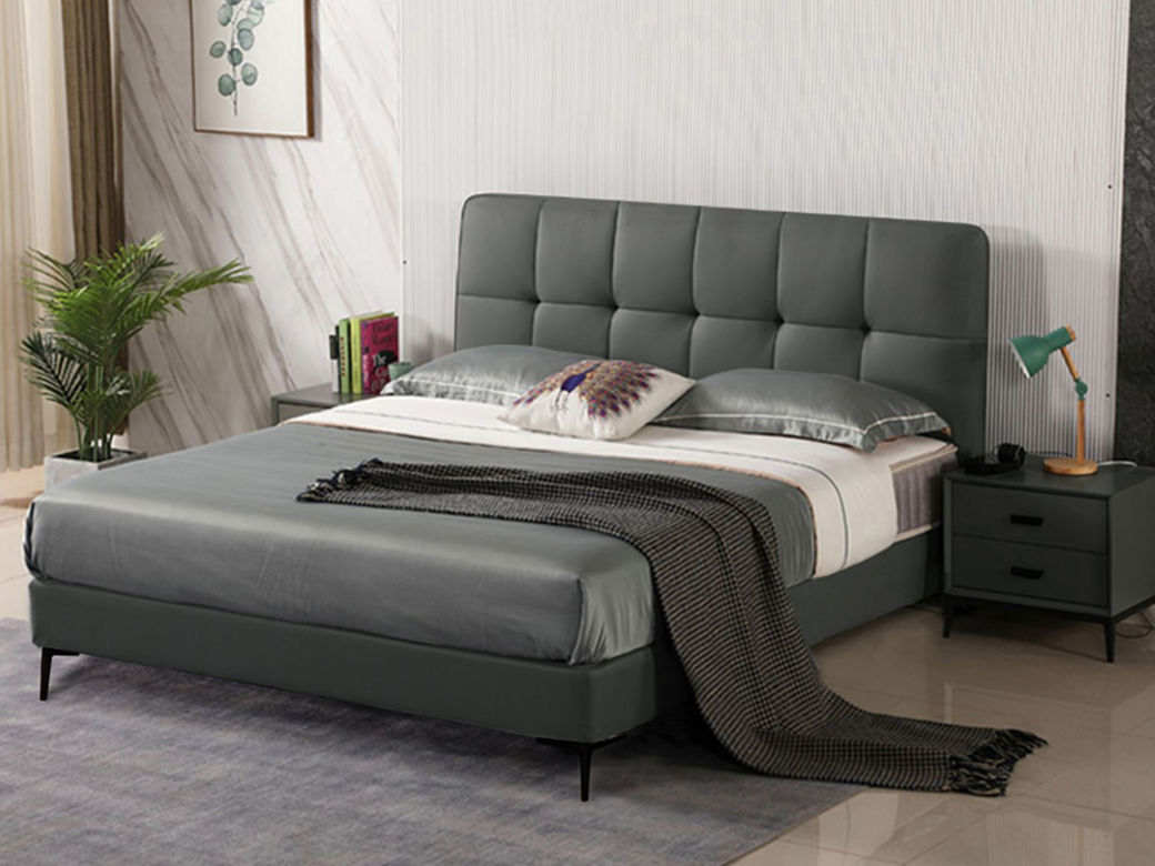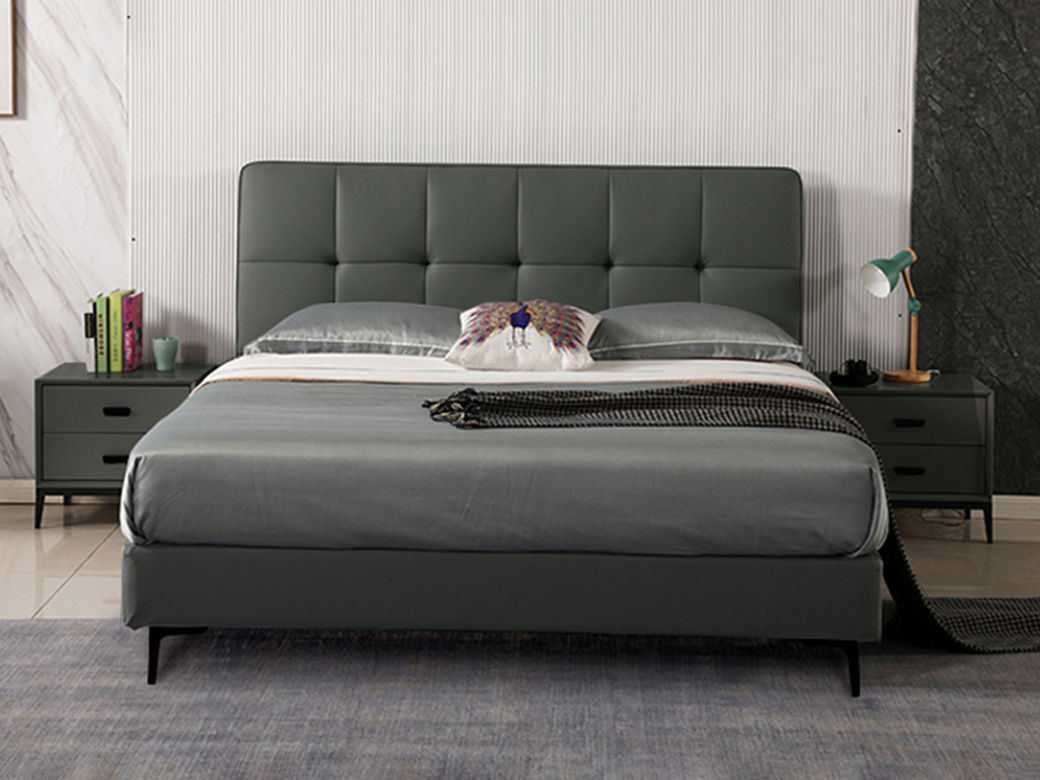 左右家居 现代简约 接触面头层真皮+松木内架+高回弹海绵填 1.8米床¥5433