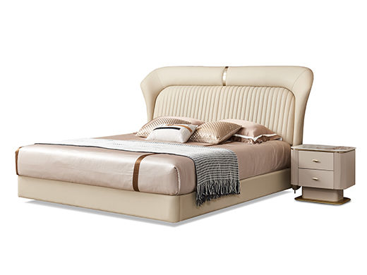 拜洛迪 轻奢 床头拉点设计+接触面头层牛皮+实木排骨架 米白色 1.8米床¥7831
