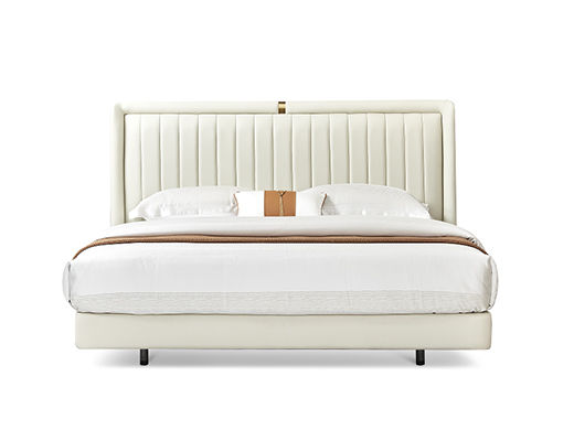 拜洛迪 轻奢 床头拉点设计+接触面头层牛皮+实木排骨架 米白色 1.8米床¥7831