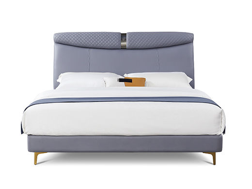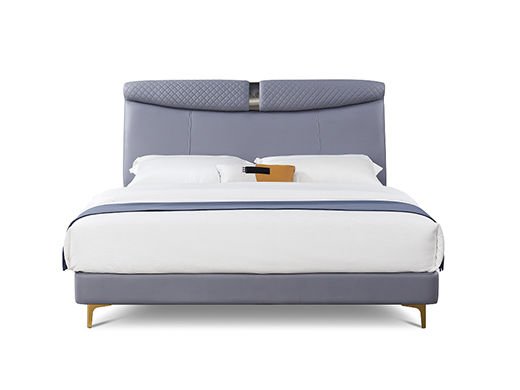 拜洛迪 轻奢 接触面真皮靠头+三边齐边+实木排骨架 米灰色 1.8米床¥4851