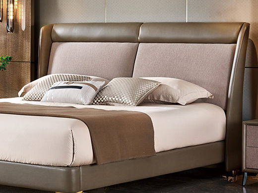 拜洛迪 轻奢 接触面真皮靠头+三边齐边+实木排骨架 米灰色 1.8米床¥4851