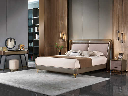 拜洛迪 轻奢 接触面真皮+不锈钢围边,三面齐边大床 米灰色 1.8米床¥13253