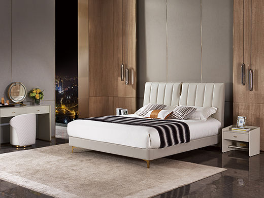拜洛迪 轻奢 纳帕仿真皮+香槟金不锈钢+加宽加厚实木排骨架 米色 1.8米床