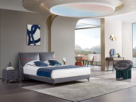 拜洛迪 现代简约 九代科技布面料+填充羽绒+靠背造型 灰蓝色 1.8米床¥4280