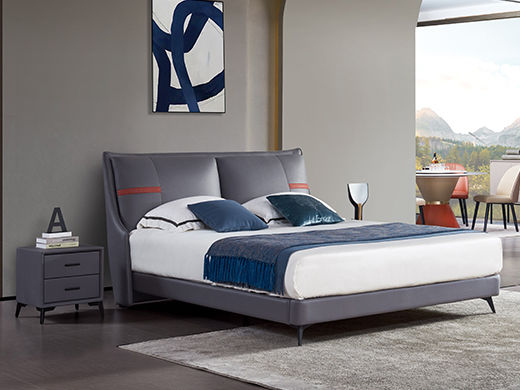 拜洛迪 现代简约 科技布+三边齐边+实木静音排骨架 深灰色+桔红色 1.8米床¥3740