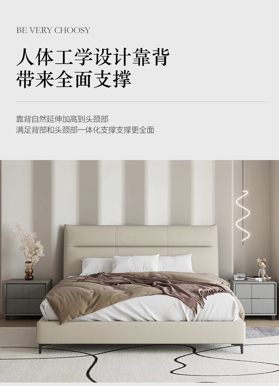 A系优选 现代简约 全实木框架 接触面头层牛皮 高密度海绵 1.8米床(价格不含高箱,如需定制请咨询客服)¥2819