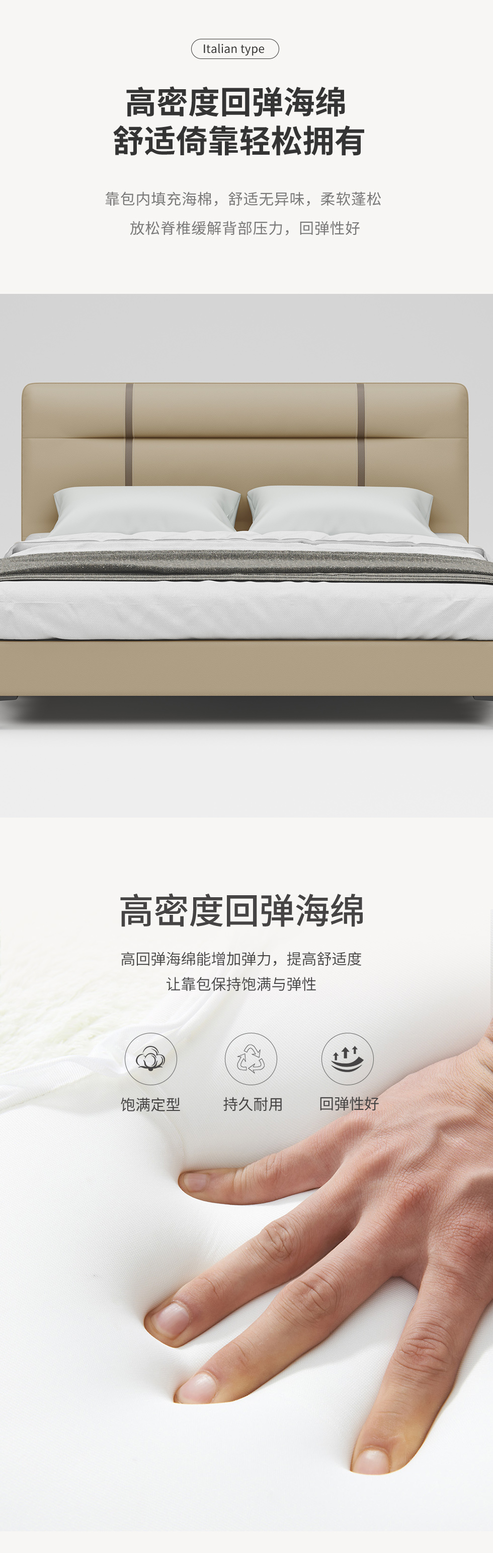 B系优选 现代简约 接触面头层牛皮 太空绵+高回弹海绵 米白 1.8米床(价格不含高箱,如需定制请咨询客服)¥5126