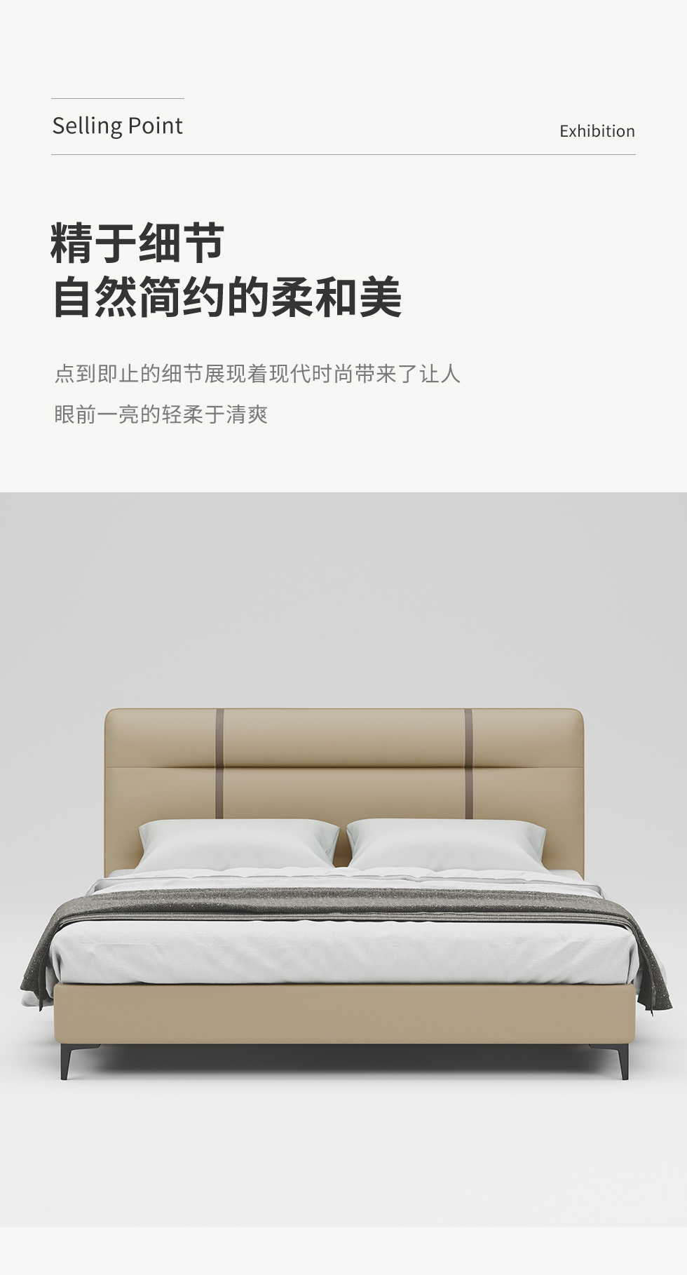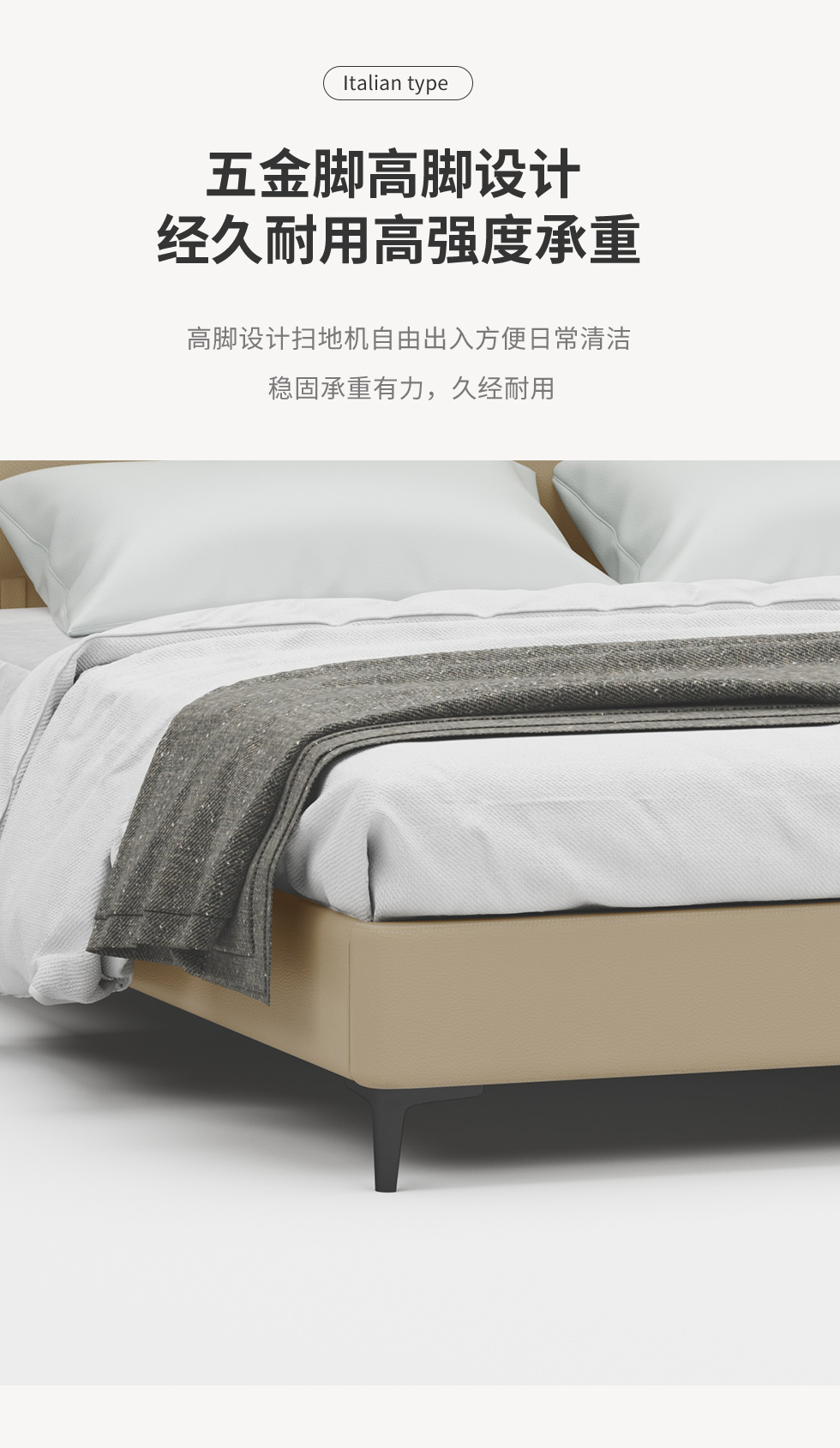 B系优选 现代简约 接触面头层牛皮 太空绵+高回弹海绵 米白 1.8米床(价格不含高箱,如需定制请咨询客服)¥5126