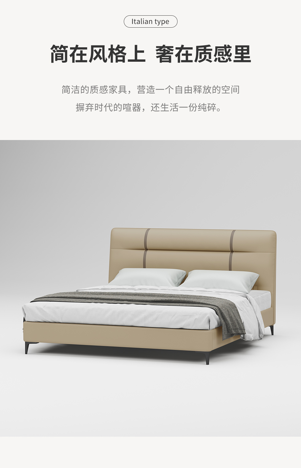 B系优选 现代简约 接触面进口头层黄牛皮+高回弹海绵+实木+10分排骨架+合金刚脚 灰棕 1.8米床(不可定制高箱)¥2819