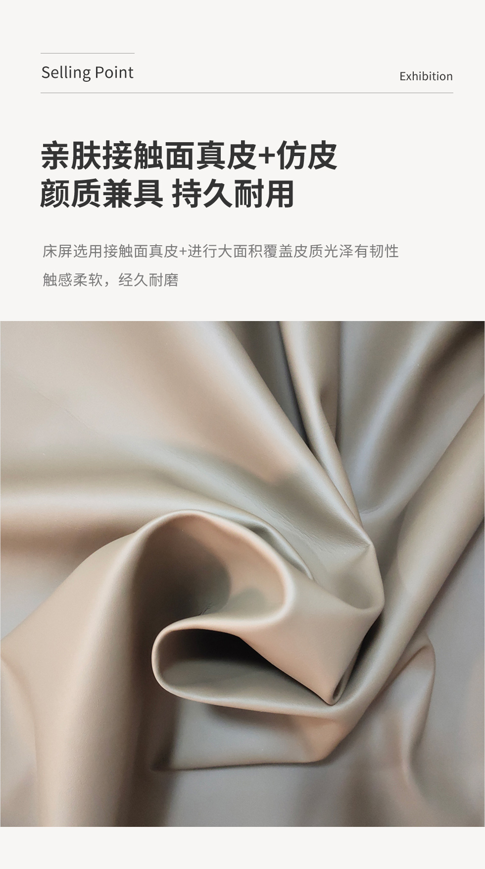 B系优选 现代简约 接触面真皮+仿皮+木框架高密 度回弹海绵+静音防滑实木十分排骨条+五金脚+静音条 卡其色加上配色 1.5米 真皮软床(价格不含高箱,如需定制请咨询客服) |