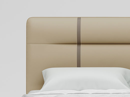 B系优选 现代简约 接触面真皮+仿皮+木框架高密 度回弹海绵+静音防滑实木十分排骨条+五金脚+静音条 卡其色加上配色 1.5米 真皮软床(价格不含高箱,如需定制请咨询客服)