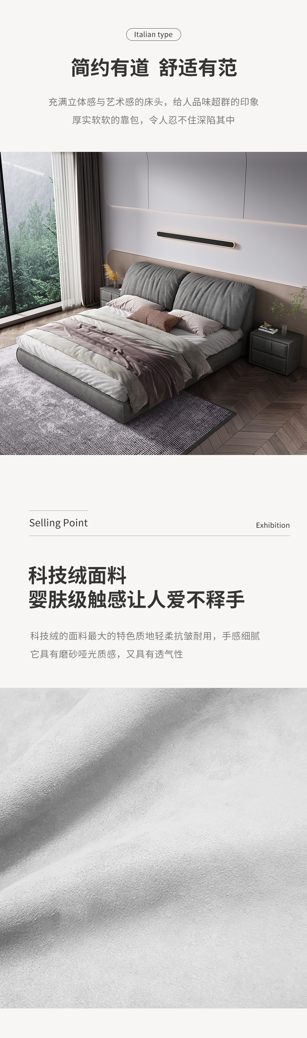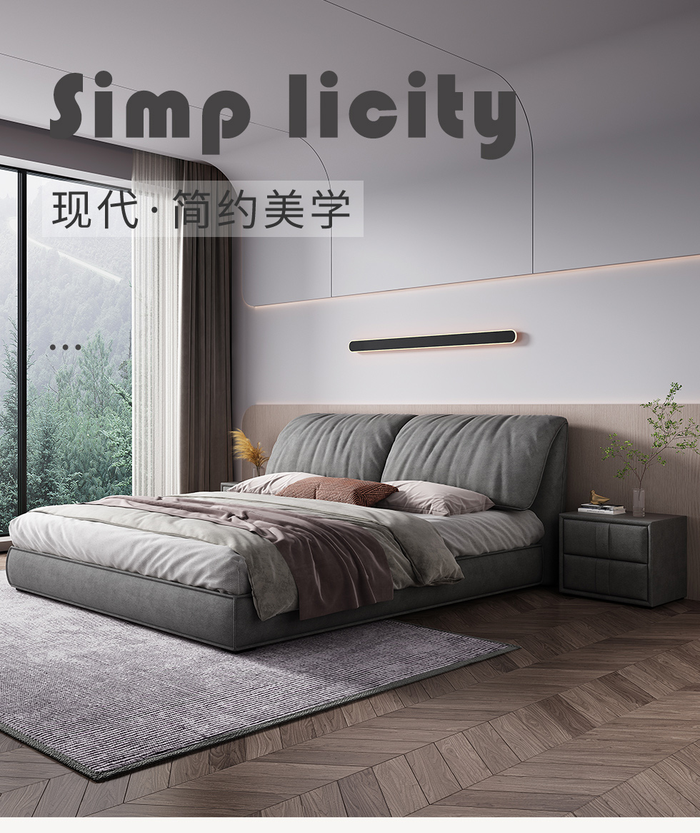 【套餐待优化】A系优选 现代简约 科技绒 靠包填充:公仔棉+羽绒 框架:全松木 标配床板:配静音E床板 1.8米床(价格不含高箱,如需定制请咨询客服)