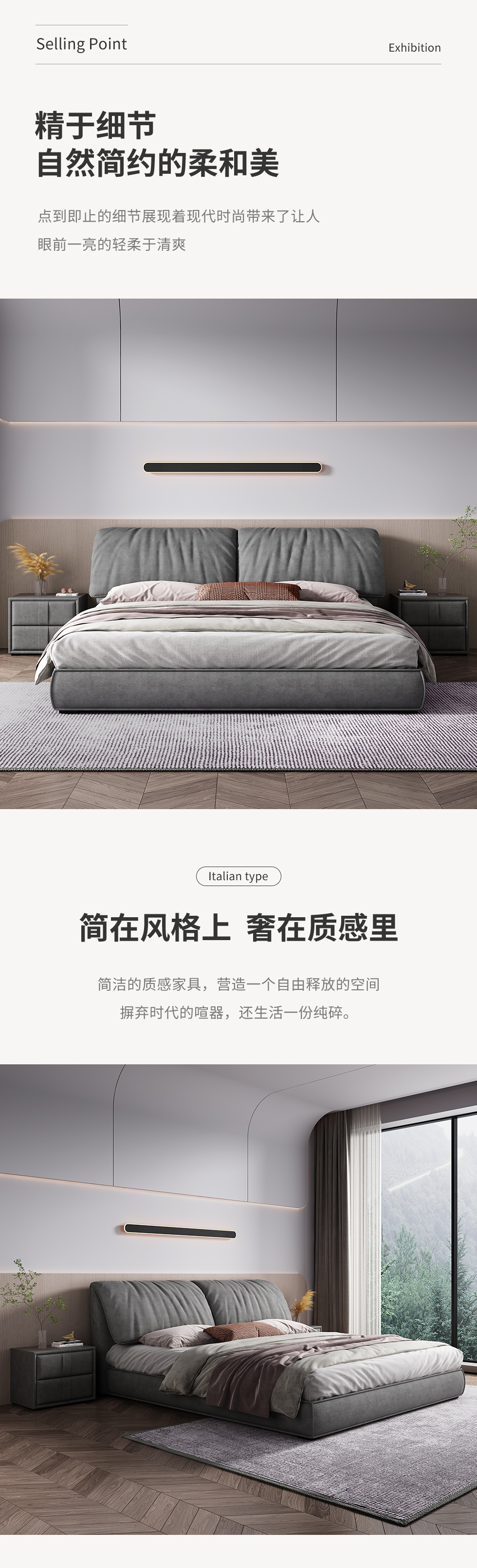 A系优选 现代简约 磨砂布+板木结构+普通排骨架 图片色 1.8米齐边床+2床头柜(价格不含高箱,如需定制请咨询客服)¥3728
