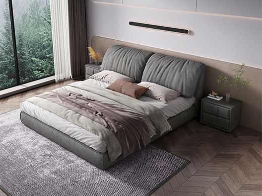 A系优选 现代简约 接触面头层牛皮真皮+实木框架+多层实木板+高回弹海绵+碳素钢五金脚+静音床板 深灰色 1.8米床(价格不含高箱,如需定制请咨询客服)¥2819