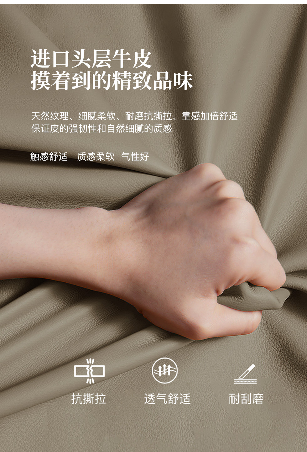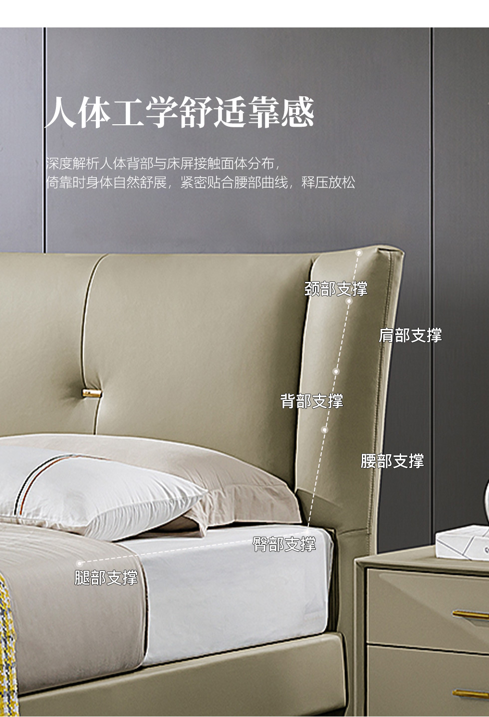 拉斐尔 轻奢 接触面头层牛皮+仿真皮+多层实木板+实木内架+碳素钢五金+静音排骨架 1.8米床¥12955