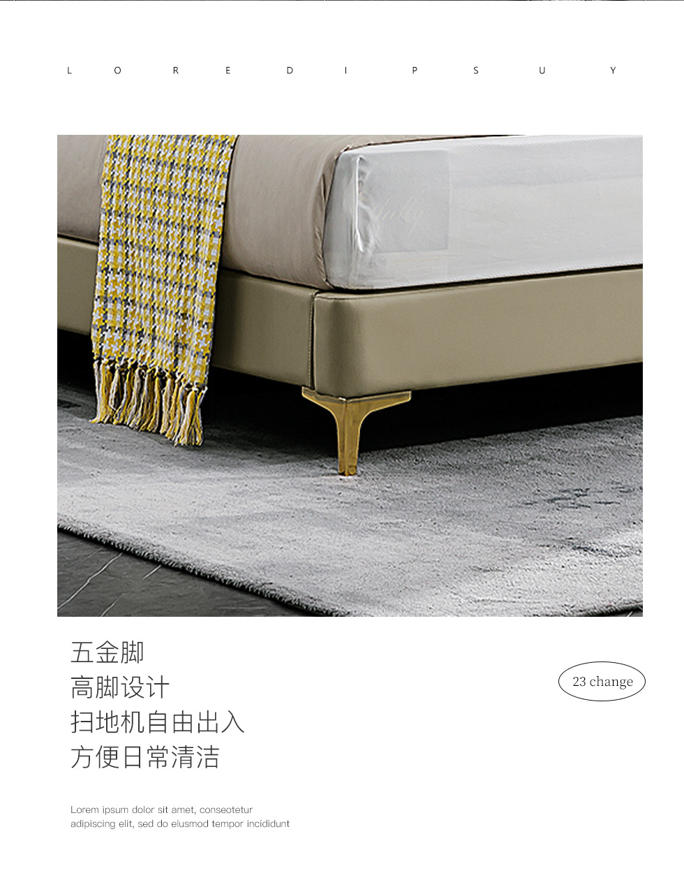拉斐尔 轻奢 接触面头层牛皮+仿真皮+多层实木板+实木内架+电镀不锈钢五金+静音排骨架 1.8米床¥9159