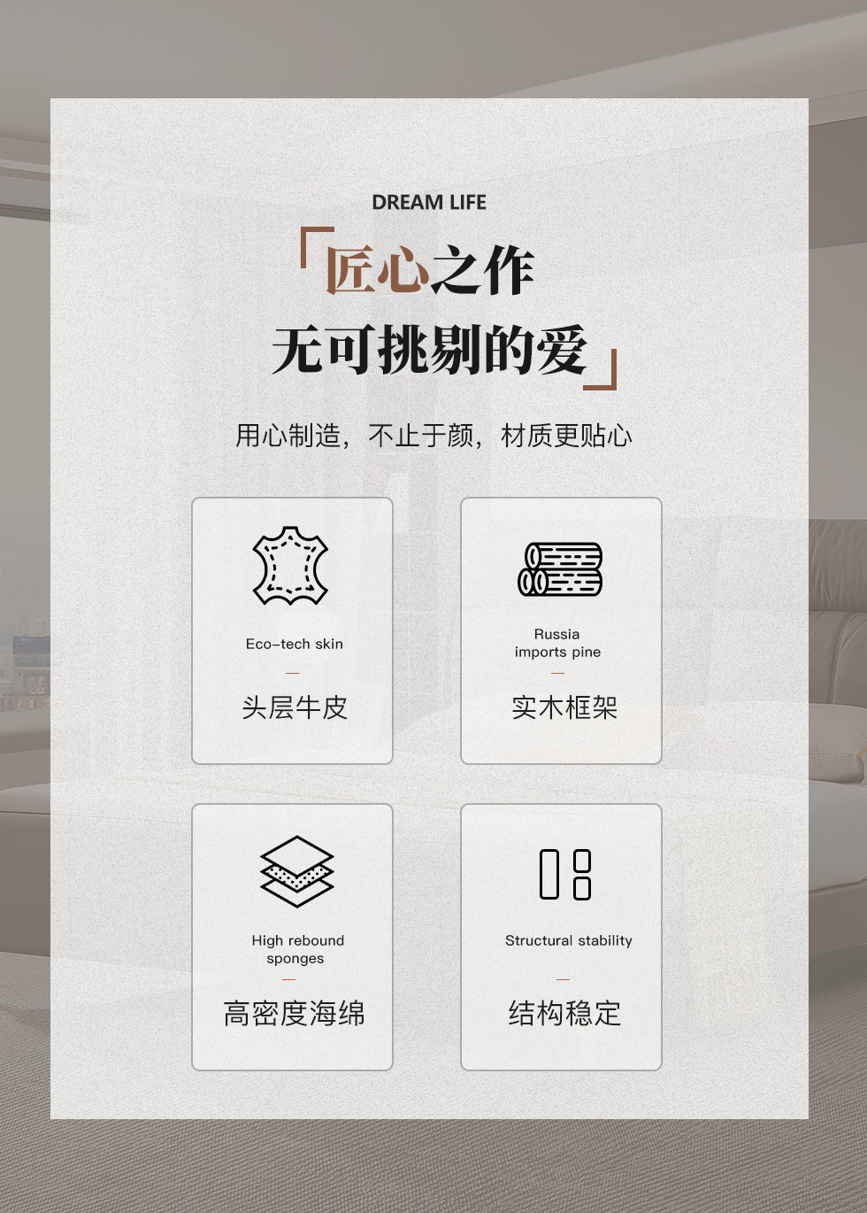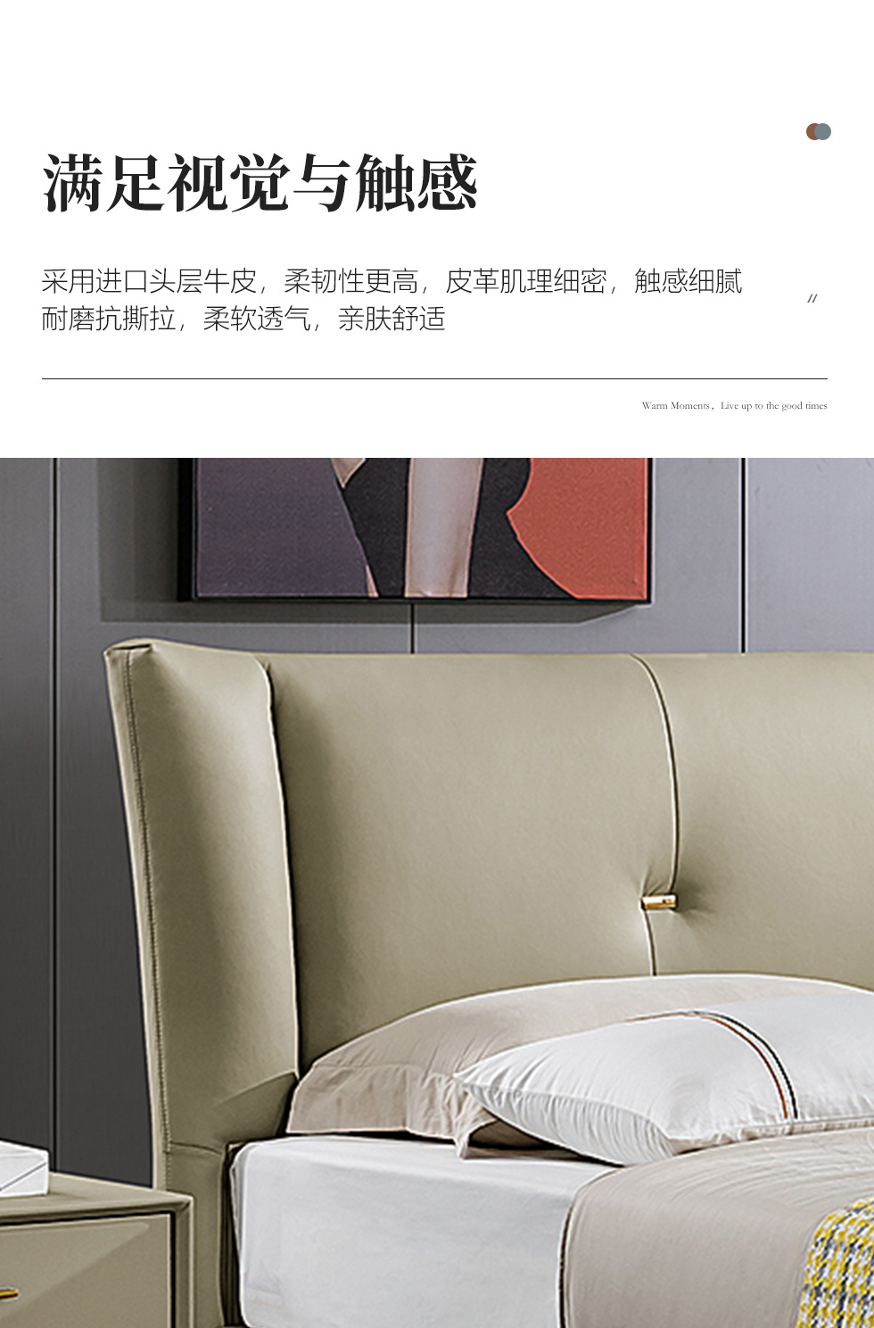 拉斐尔 轻奢 接触面头层牛皮+仿真皮+多层实木板+实木内架+电镀不锈钢五金+静音排骨架 1.8米床¥5126