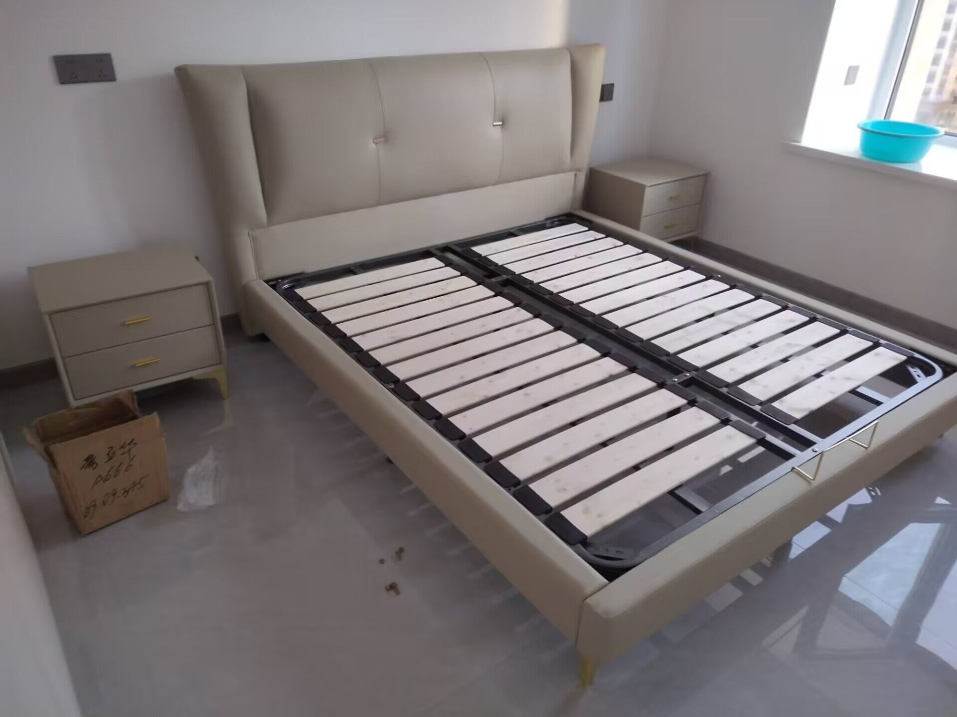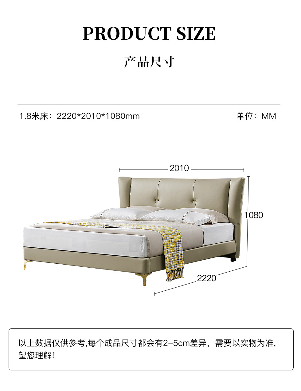 B系优选 轻奢 接触面进口头层牛皮+PVC 十公分钢木排骨架+进口实木 1.8米床+两个床头柜(价格不含高箱,如需定制请咨询客服) |