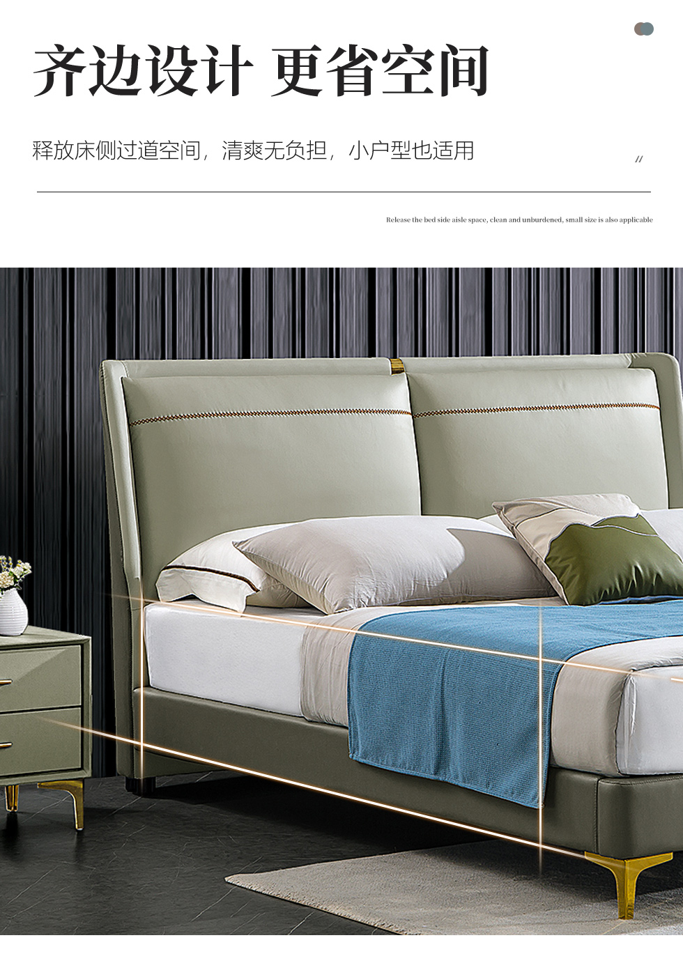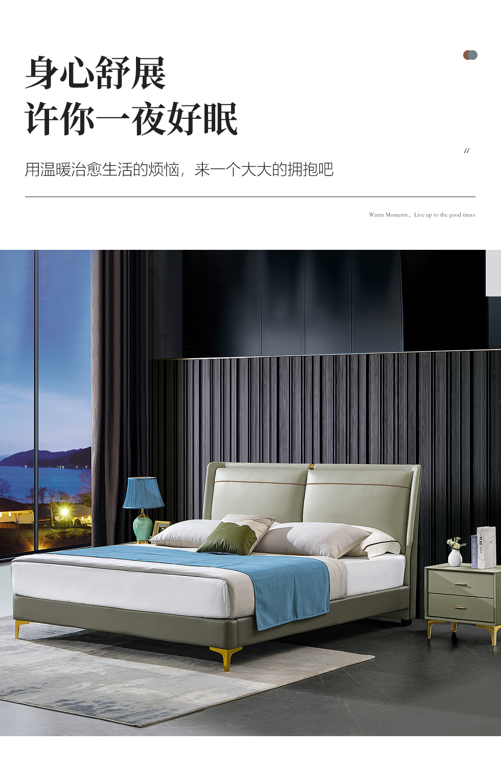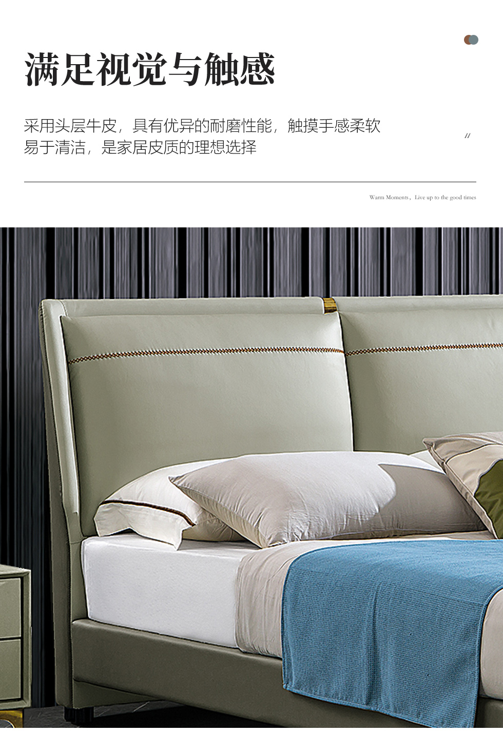 B系优选 轻奢 接触面进口头层牛皮+PVC 十公分钢木排骨架+进口实木 1.8米床+两个床头柜(价格不含高箱,如需定制请咨询客服)1件商品搭配总价: