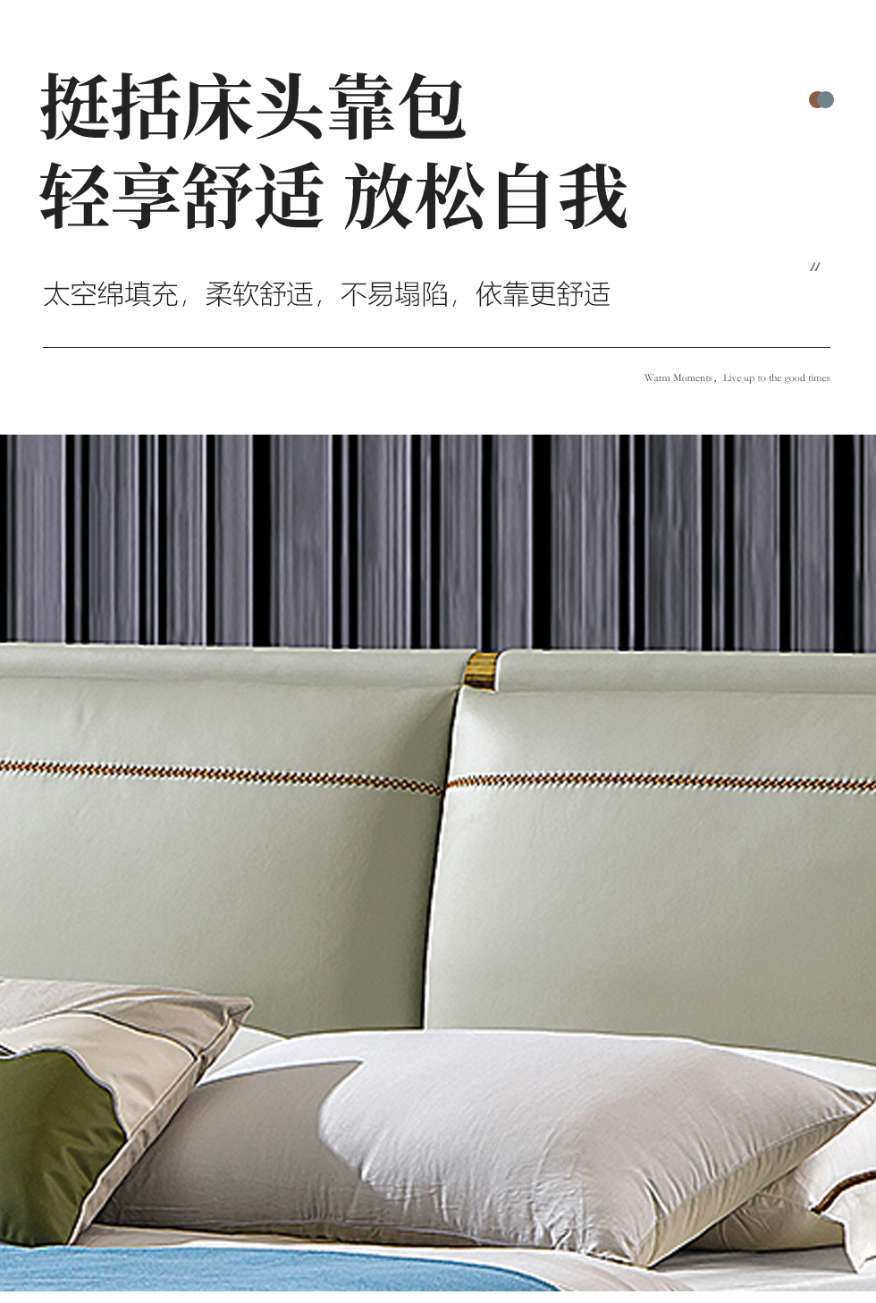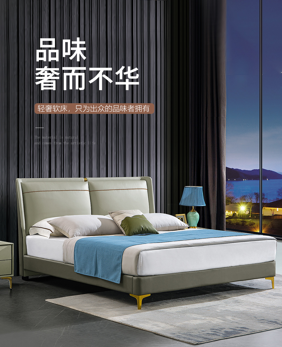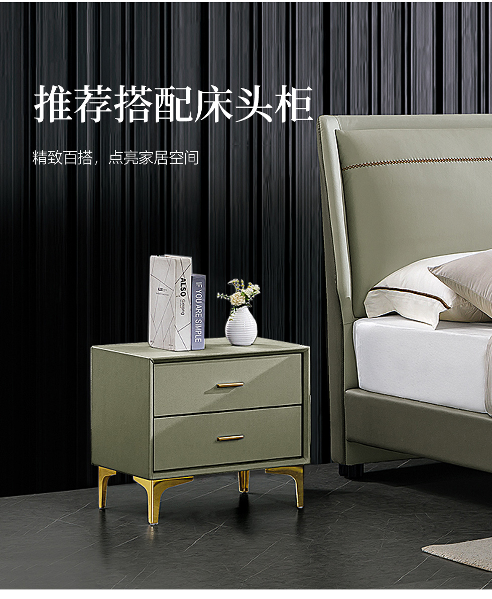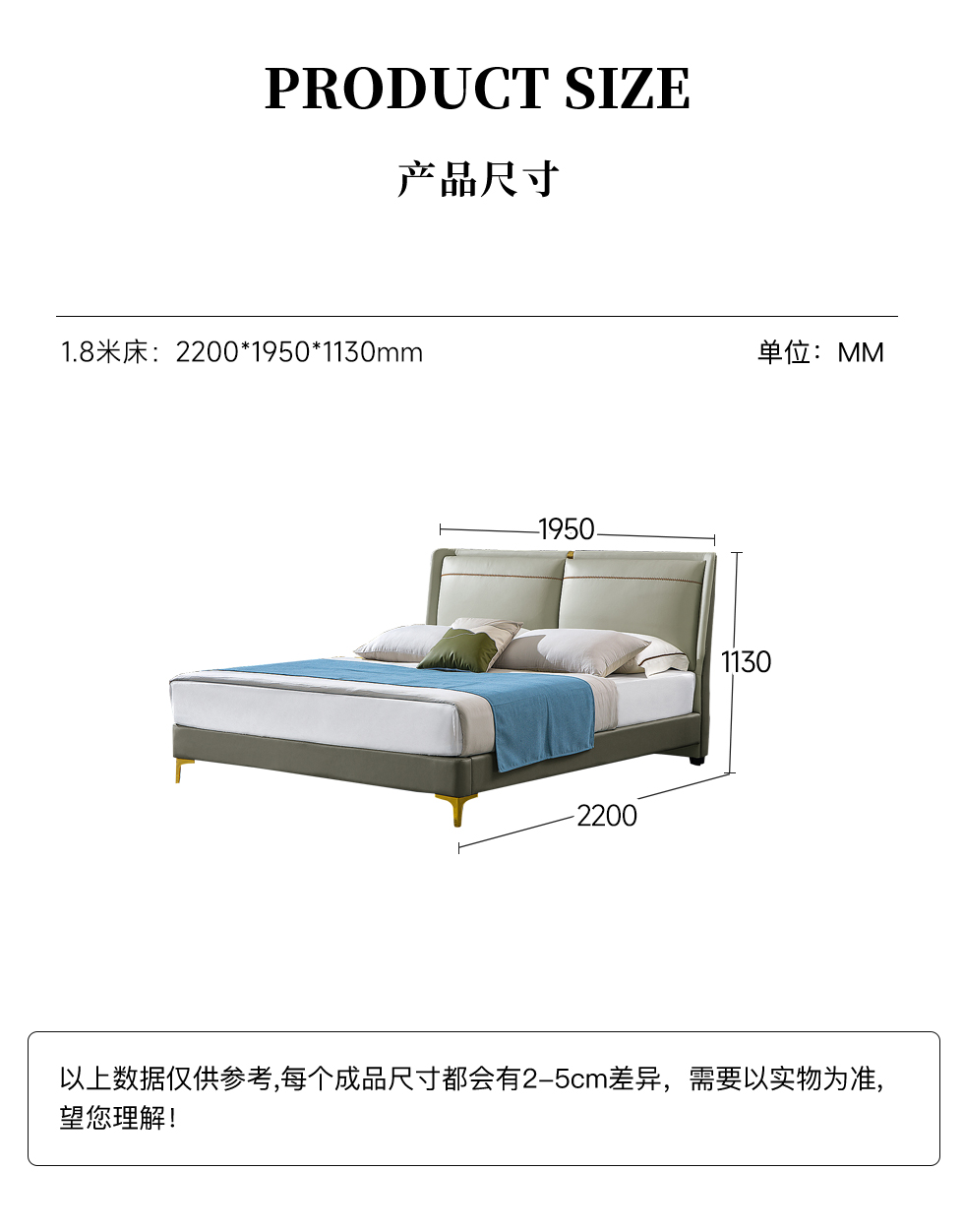B系优选 轻奢 接触面进口头层牛皮+PVC 十公分钢木排骨架+进口实木 1.8米床+两个床头柜(价格不含高箱,如需定制请咨询客服)1件商品搭配总价: