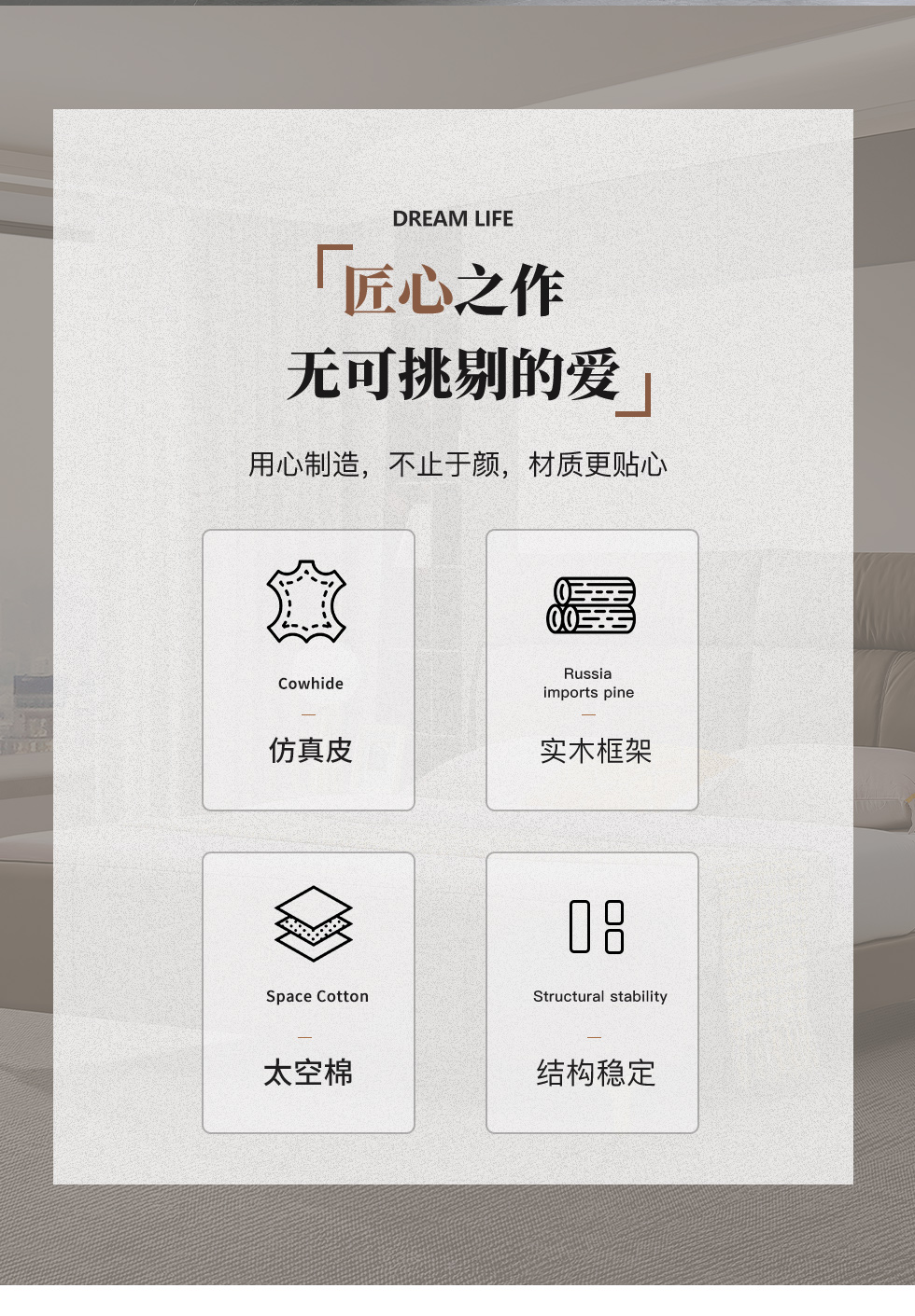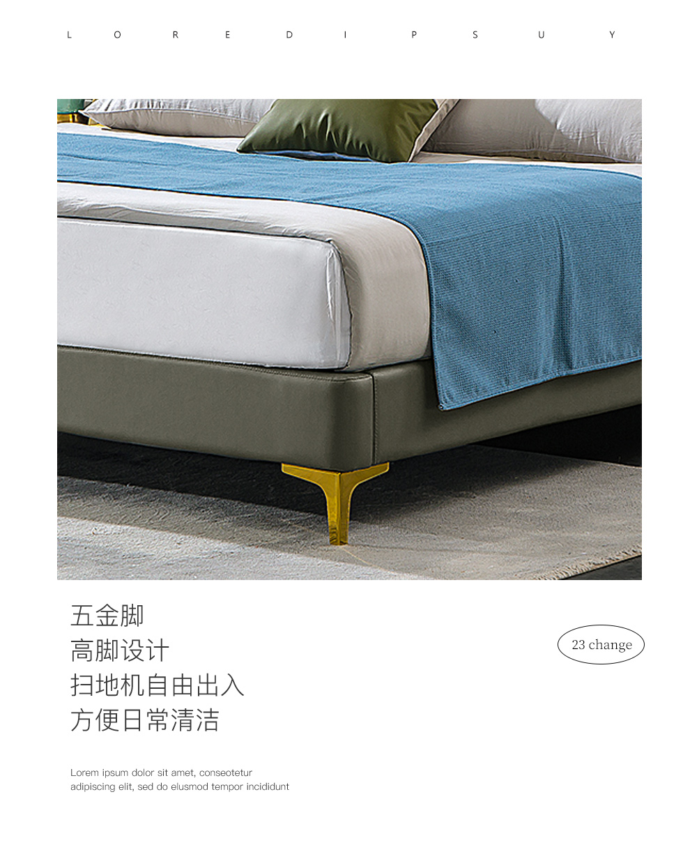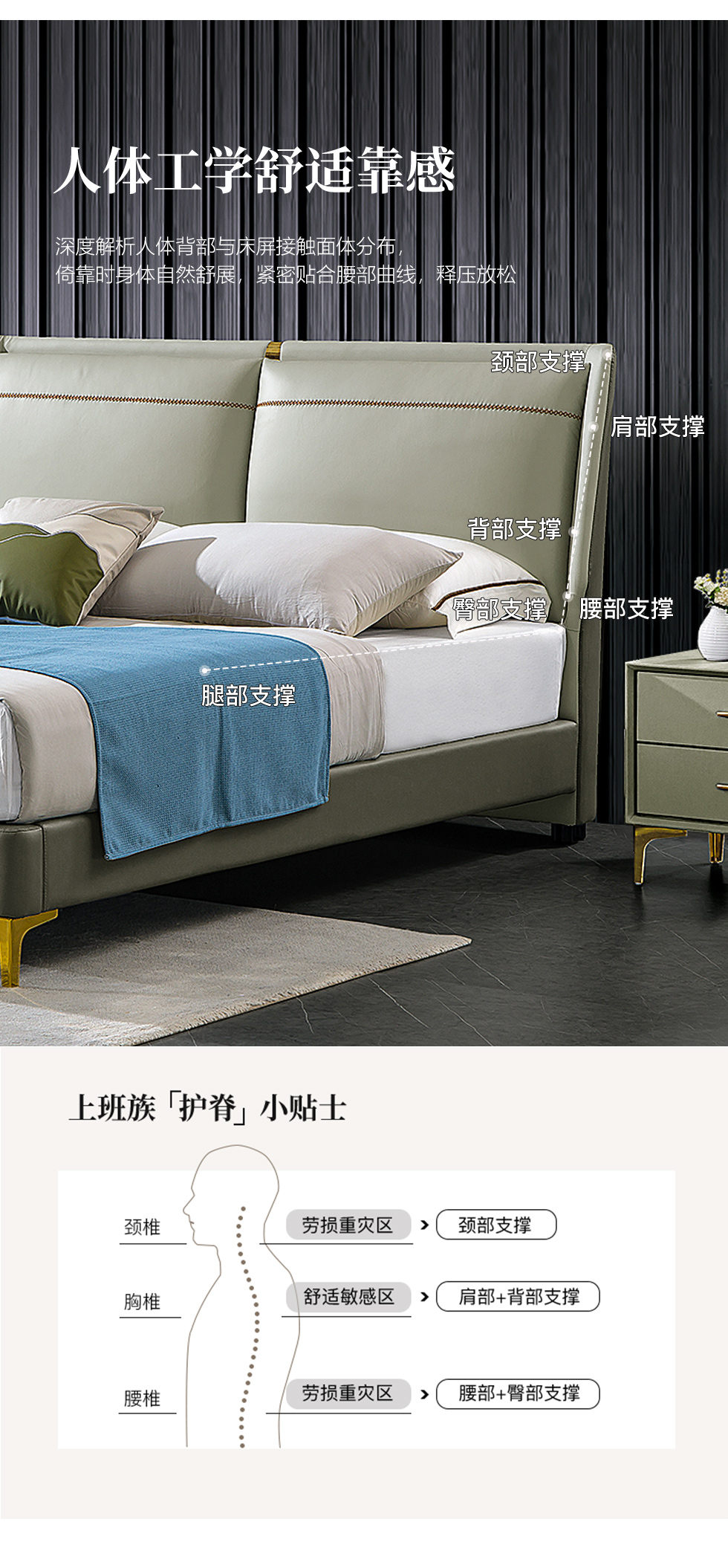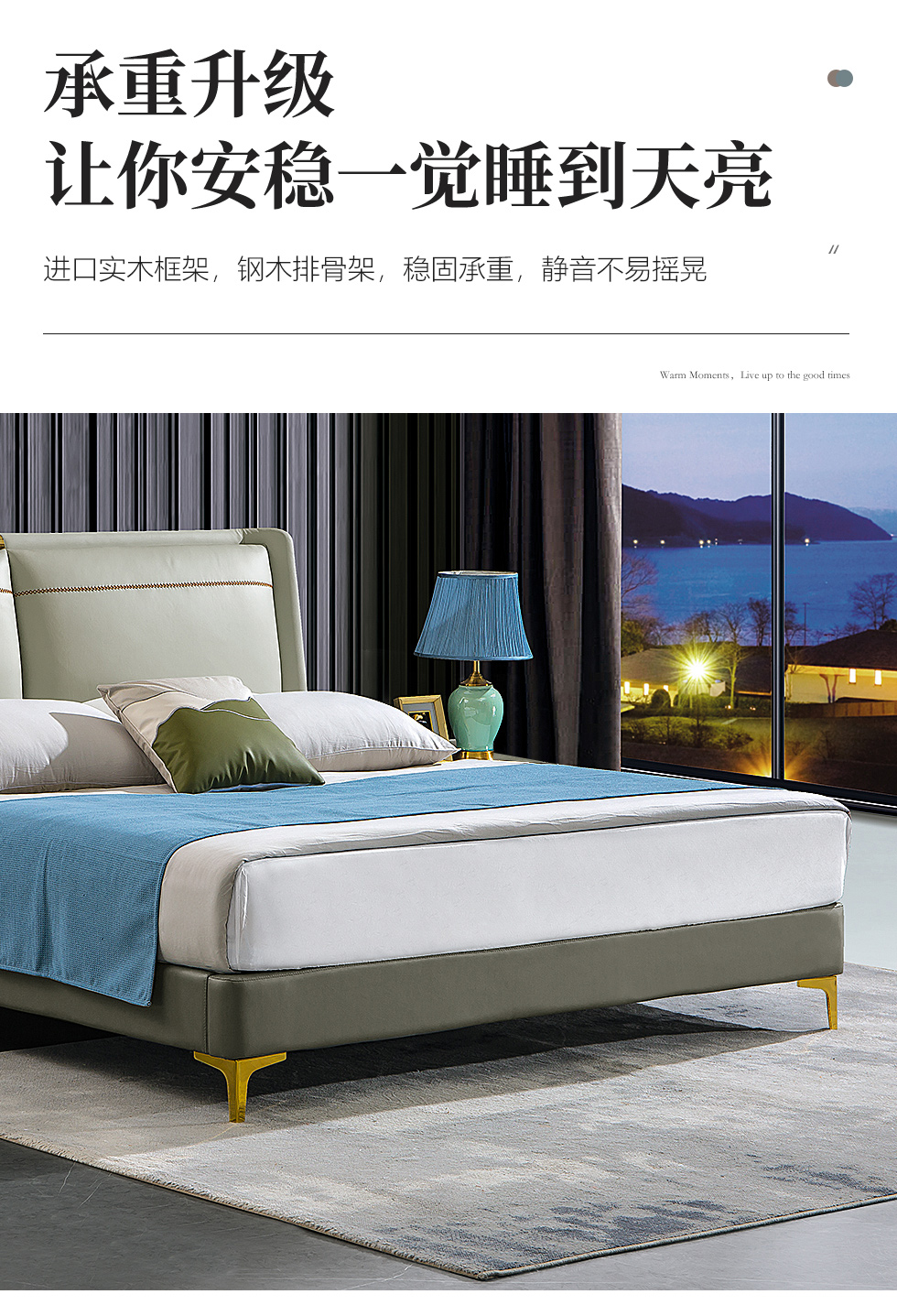 B系优选 轻奢 接触面进口头层牛皮+PVC 十公分钢木排骨架+进口实木 1.8米床+两个床头柜(价格不含高箱,如需定制请咨询客服)¥5126