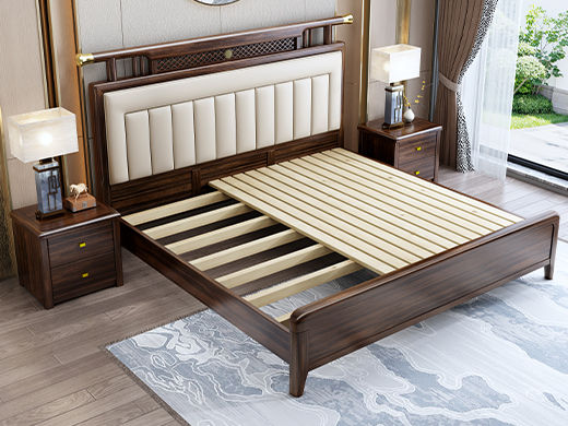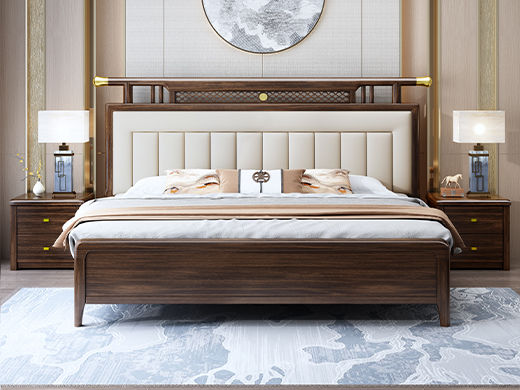 墨槿 新中式 小乌金+实木多层板+松木床板(7根床子+折叠床析)+科技布软靠 乌金色 1.8米实木床 |