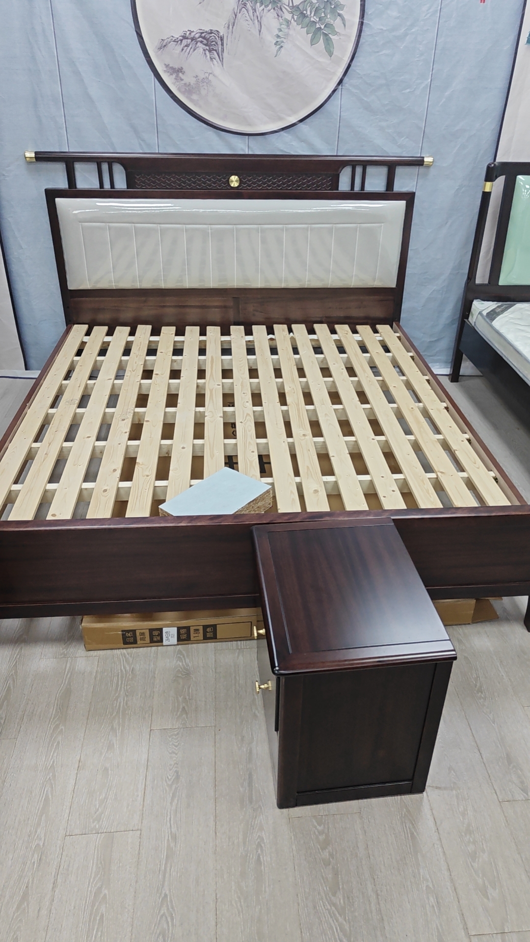 墨槿 新中式 小乌金+实木多层板+松木床板(7根床子+折叠床析) 乌金色 1.8米实木床¥8048