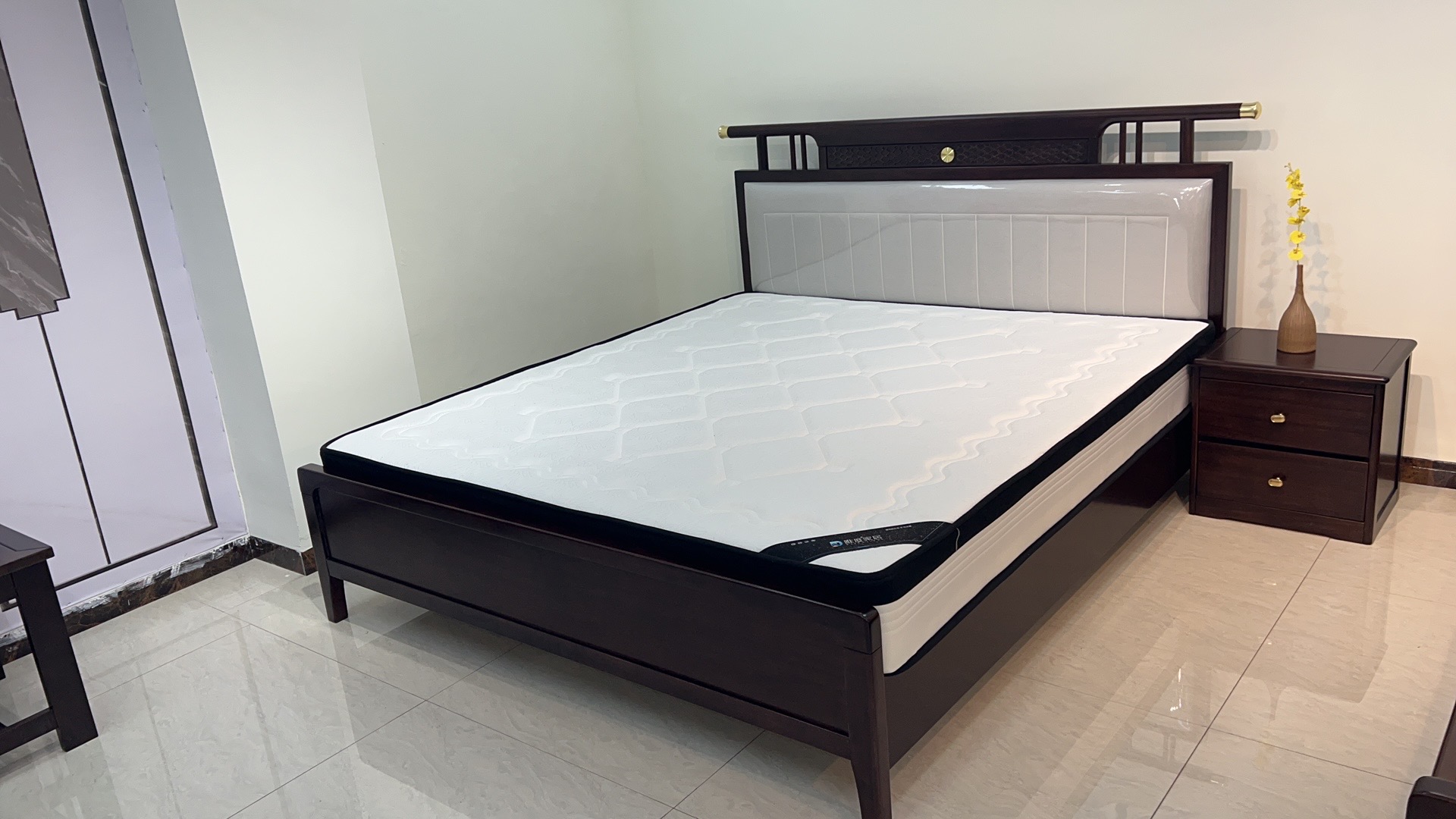 山止 新中式 橡胶木+松木 紫檀色 1.8M床¥9707