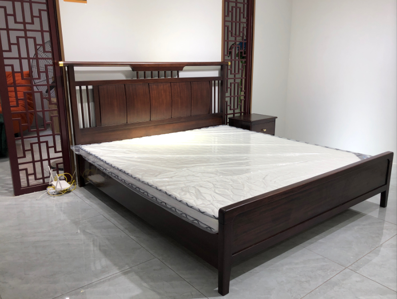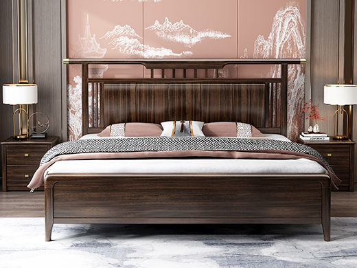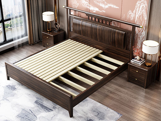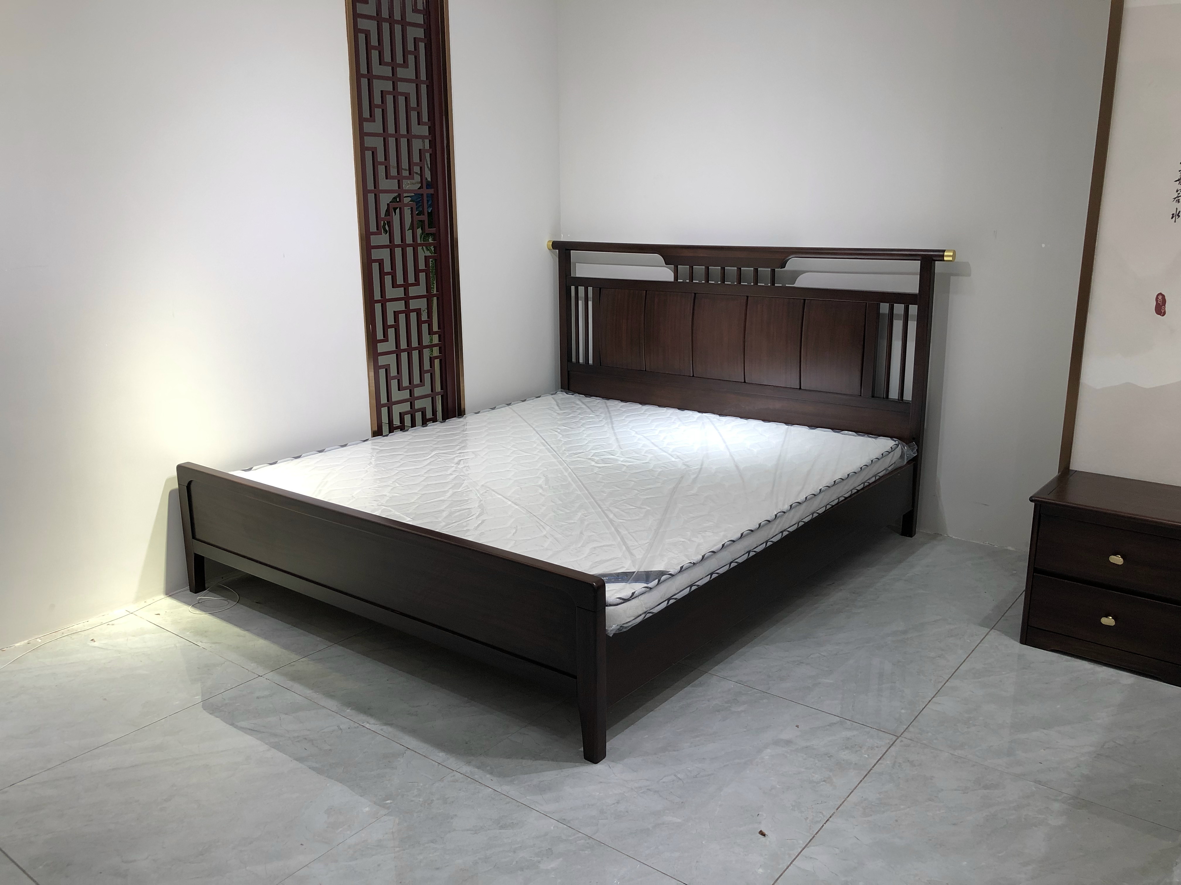 墨槿 新中式 小乌金+实木多层板+松木床板(7根床子+折叠床析) 乌金色 1.8米实木床¥8048