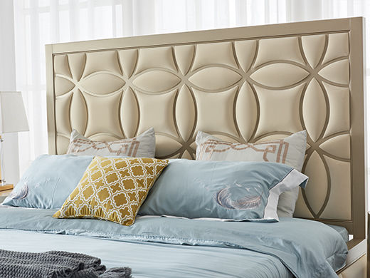 艾美侈 美式 进口榉木+超纤皮+实木床板 香槟银 1.8米床