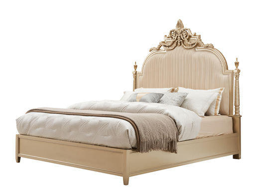 艾美侈 美式 进口榉木+布艺软包+实木雕花块+实木床板 香槟银 1.8米皇帝床