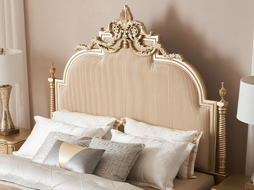 艾美侈 美式 进口榉木+实木雕花+丝绒软包+实木床板 香槟银 1.8米床