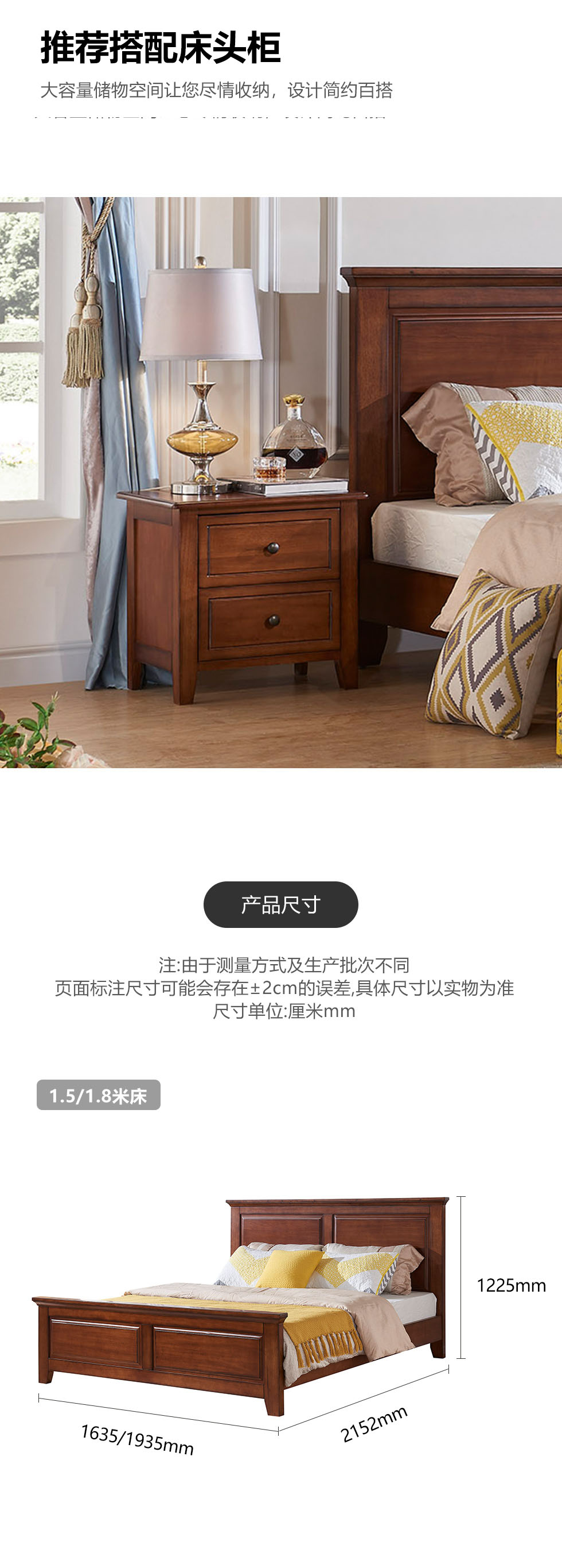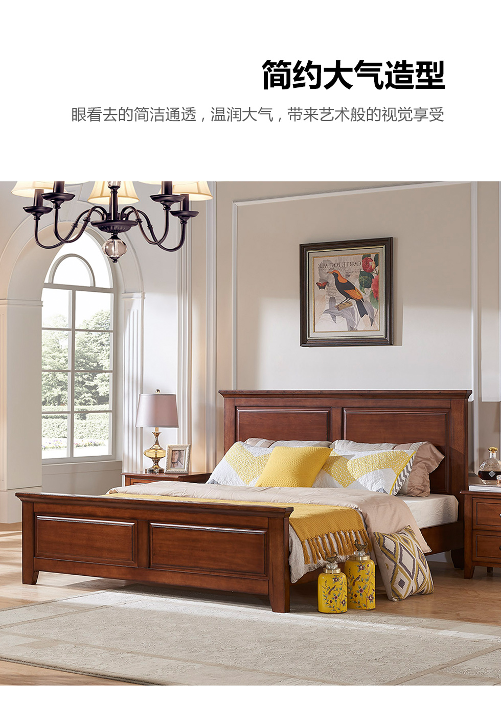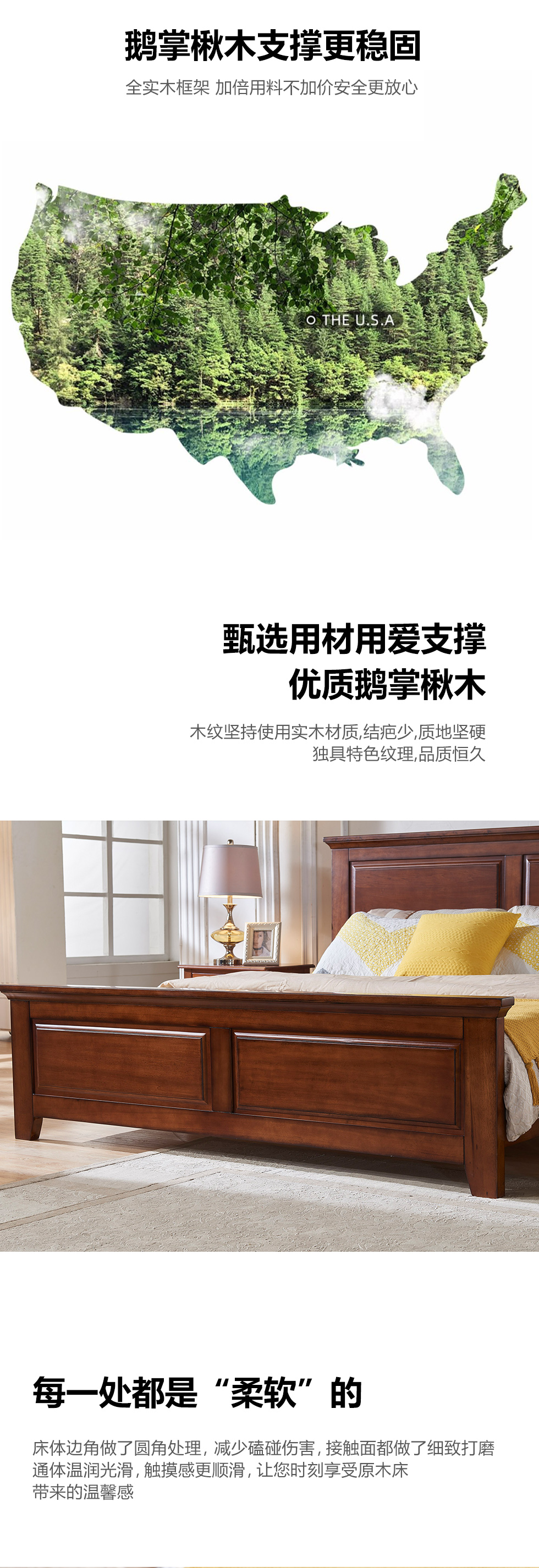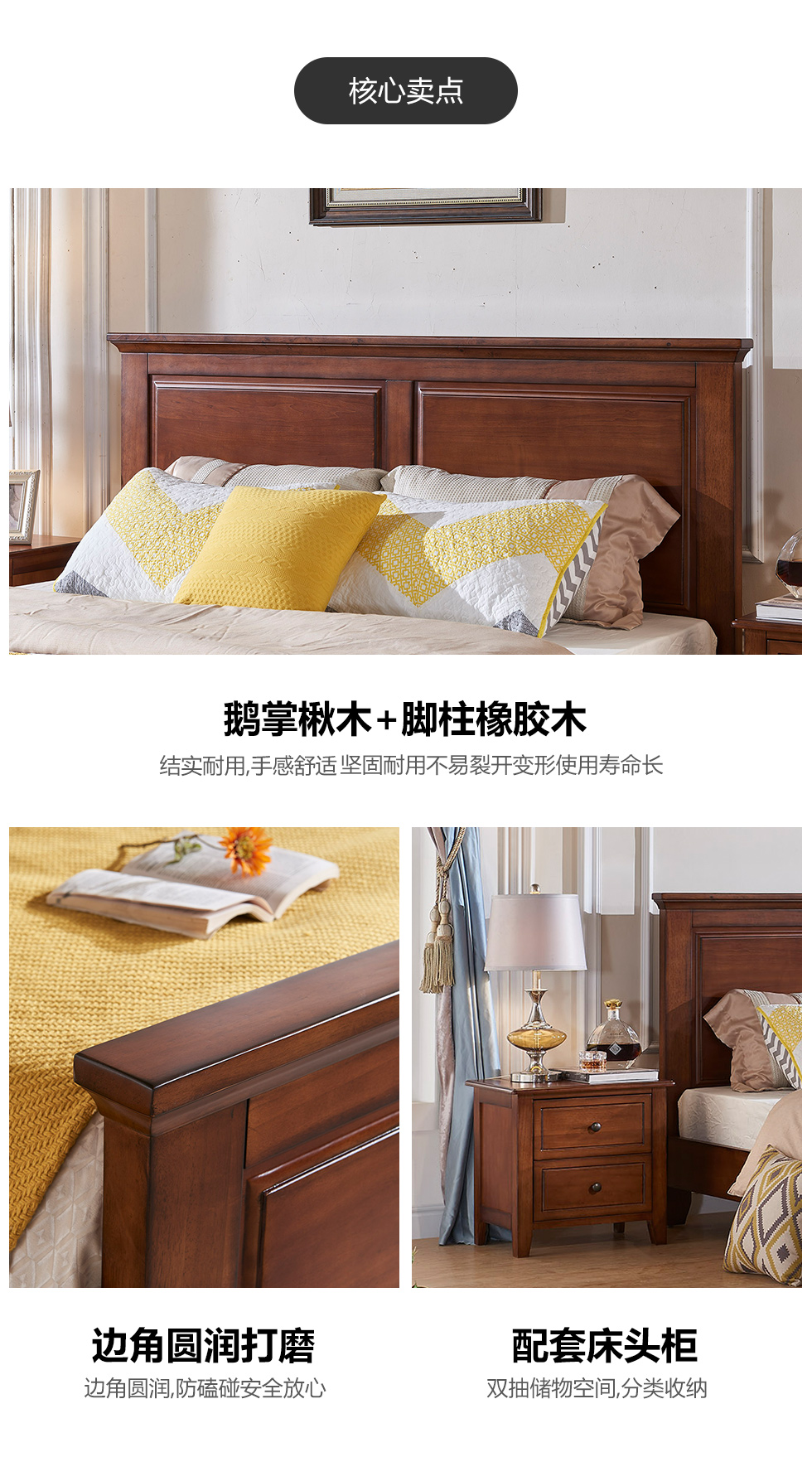多纳宝 美式 美式 鹅掌楸木+脚柱橡胶木 1.8米床
