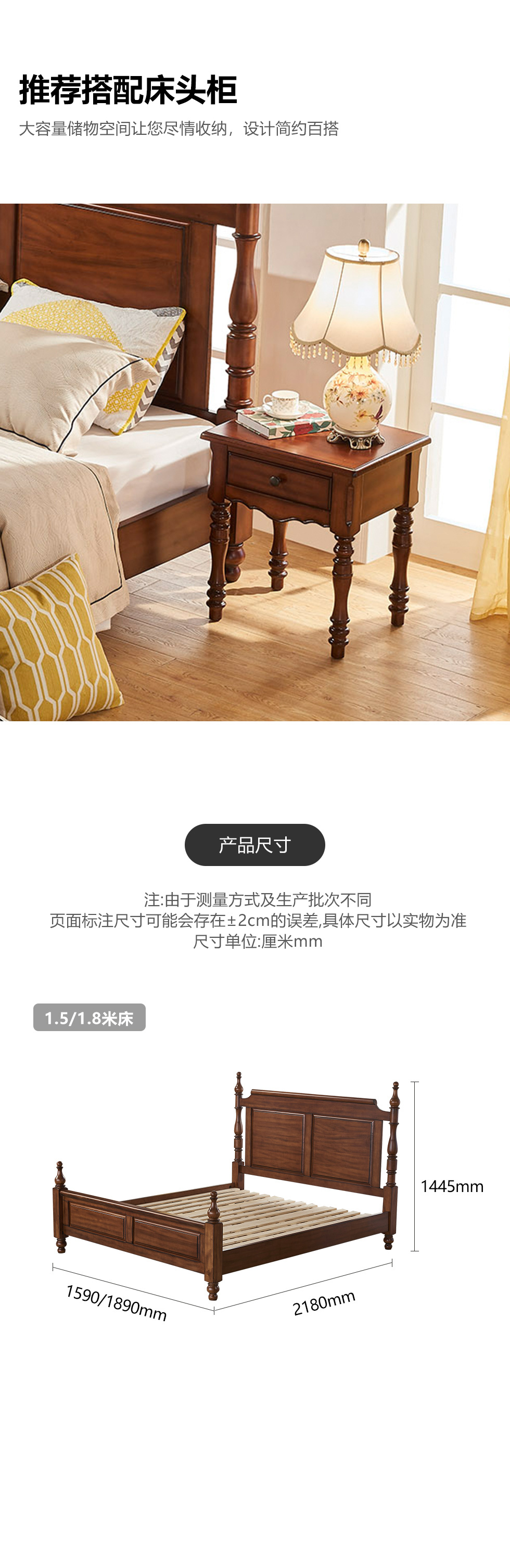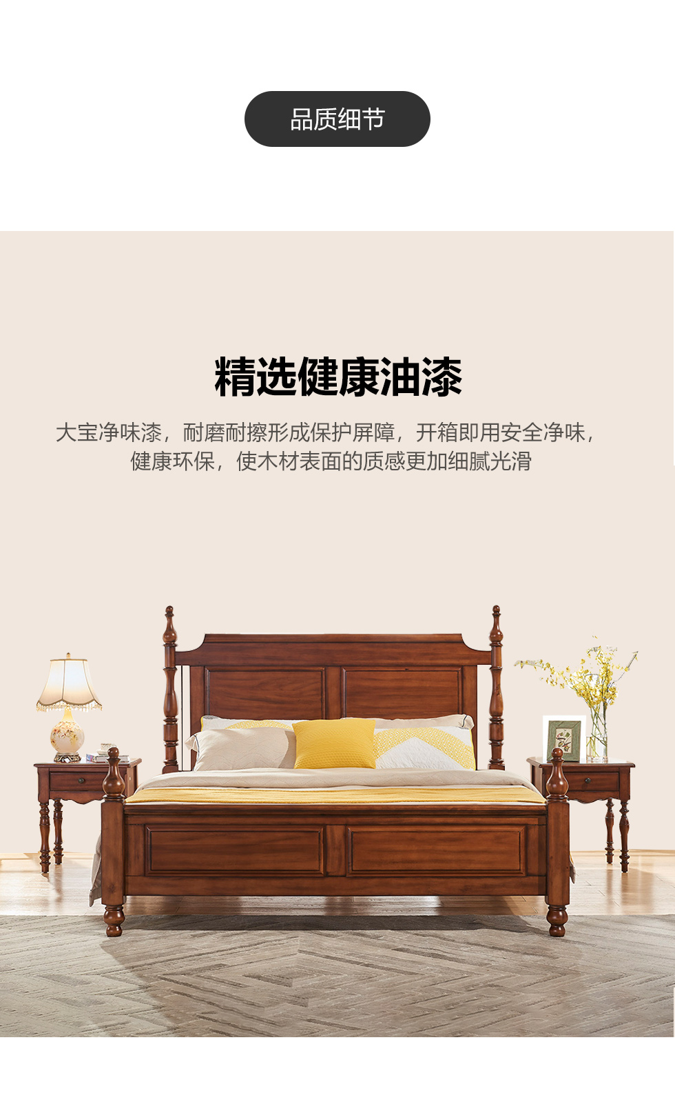 多纳宝 美式 美式 鹅掌楸木+脚柱橡胶木 1.8米床