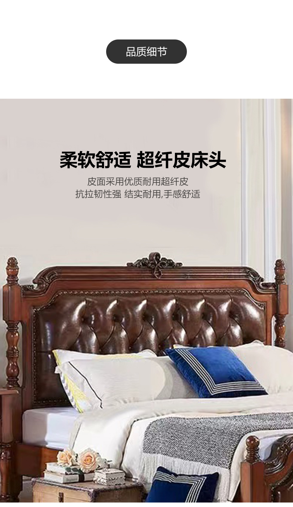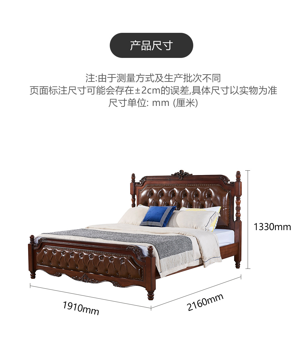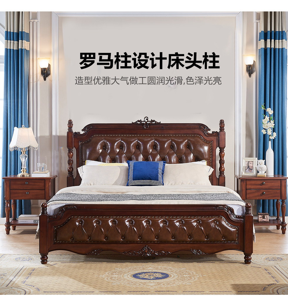 多纳宝 美式 美式 超纤仿真皮+高密度回弹海绵+进口实木 1.8米床
