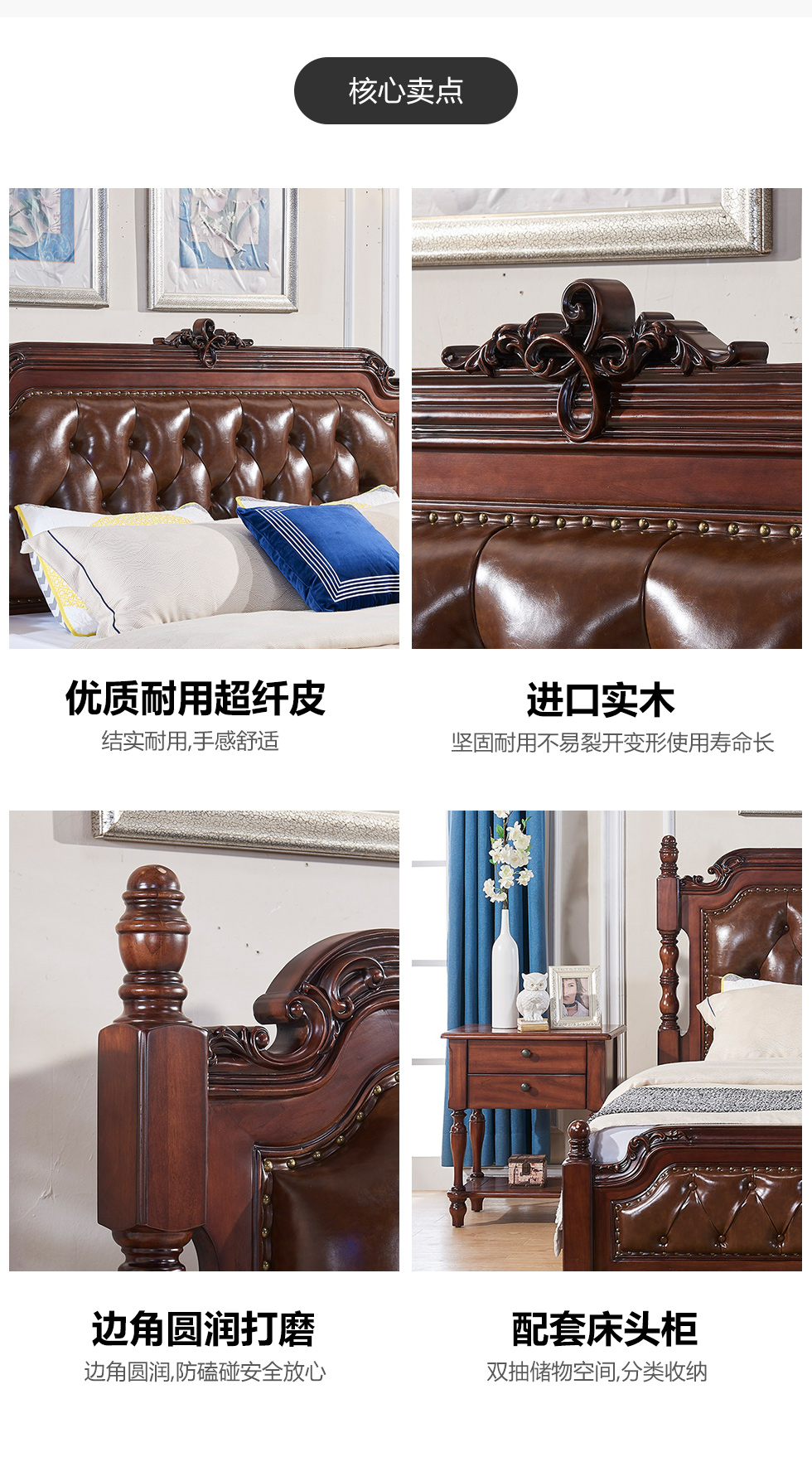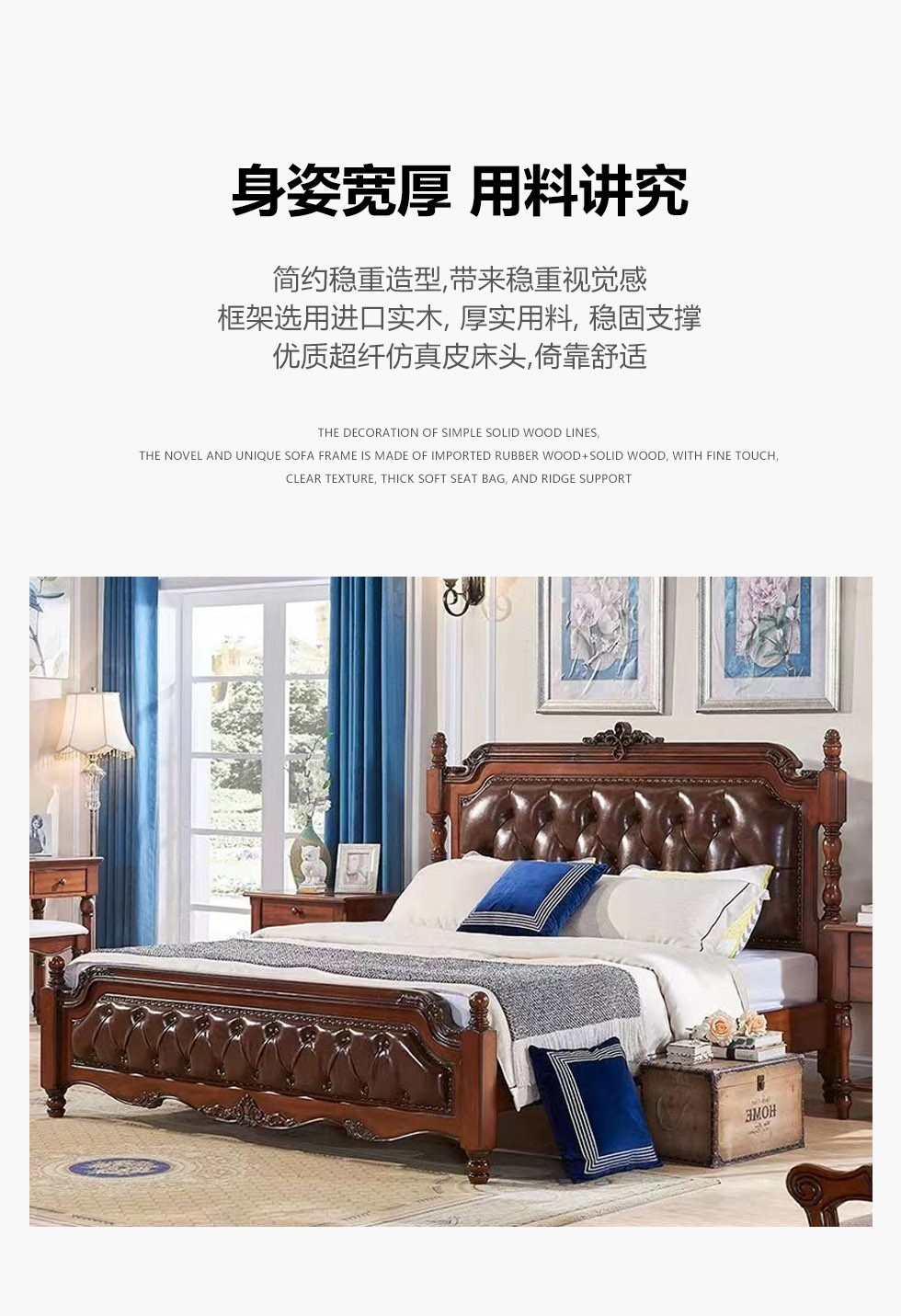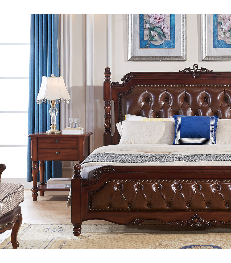 多纳宝 美式 美式 超纤仿真皮+高密度回弹海绵+进口实木 1.8米床