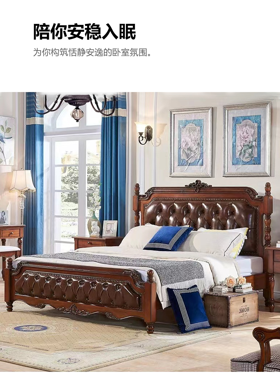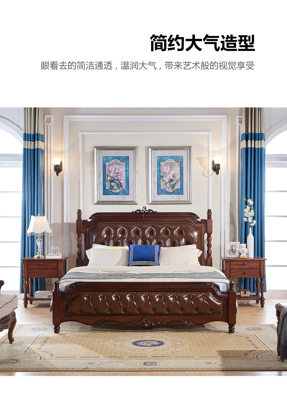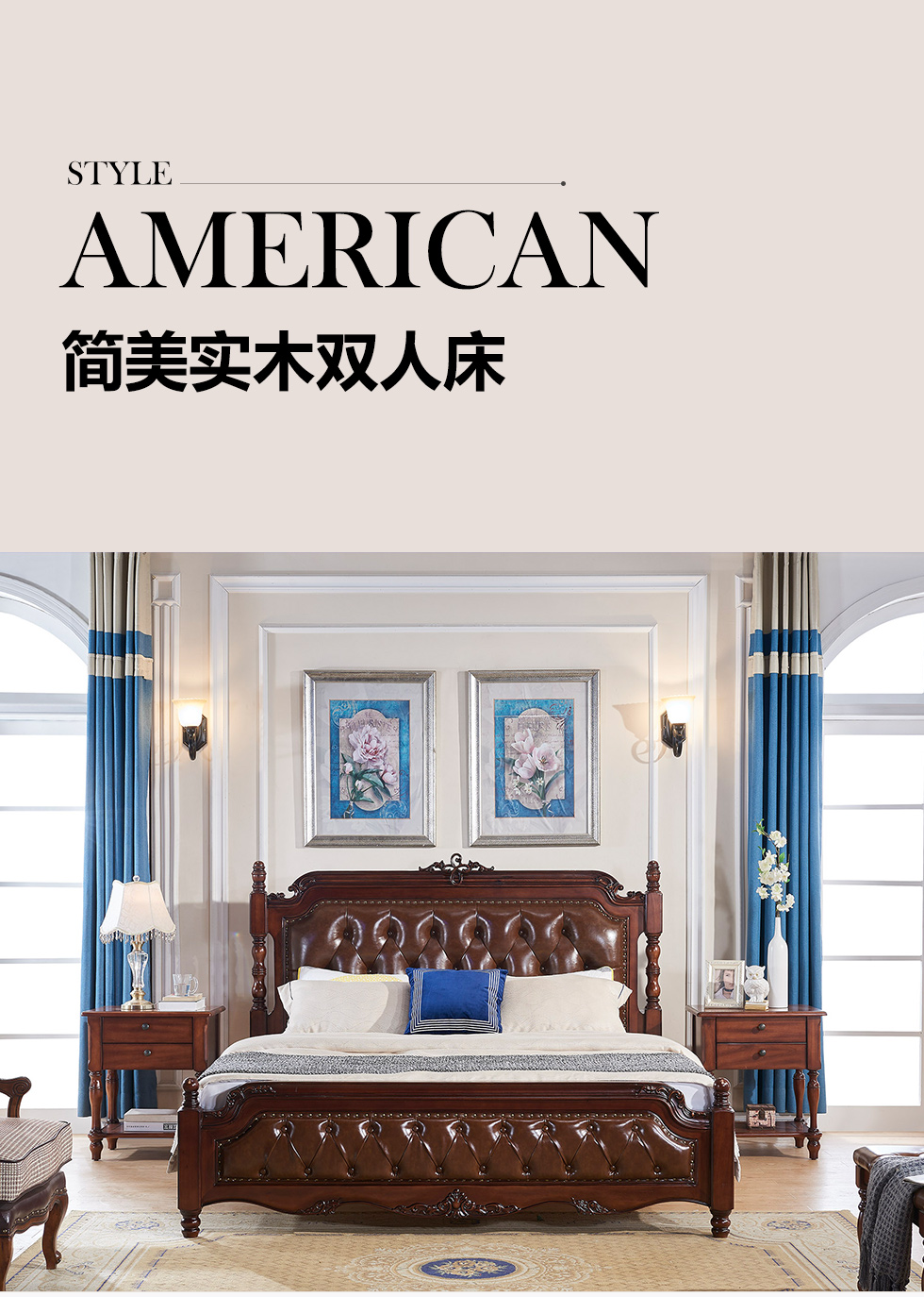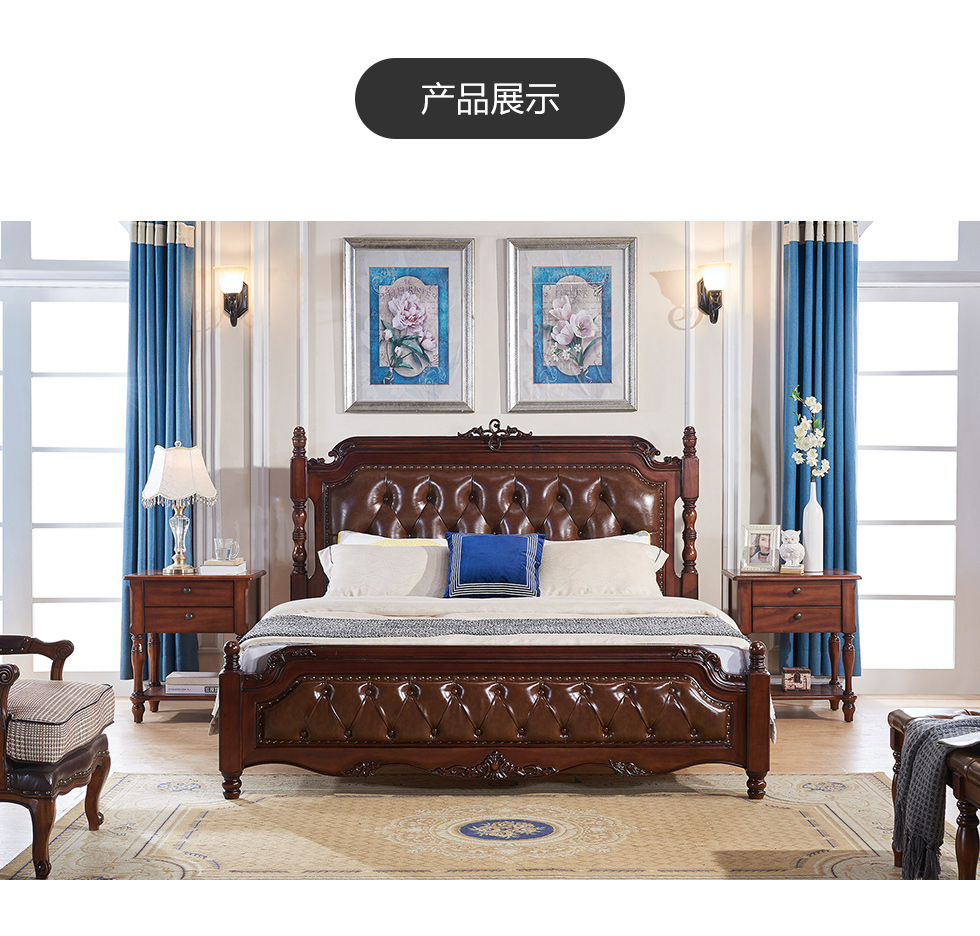 多纳宝 美式 美式 超纤仿真皮+高密度回弹海绵+进口实木 1.8米床¥8889