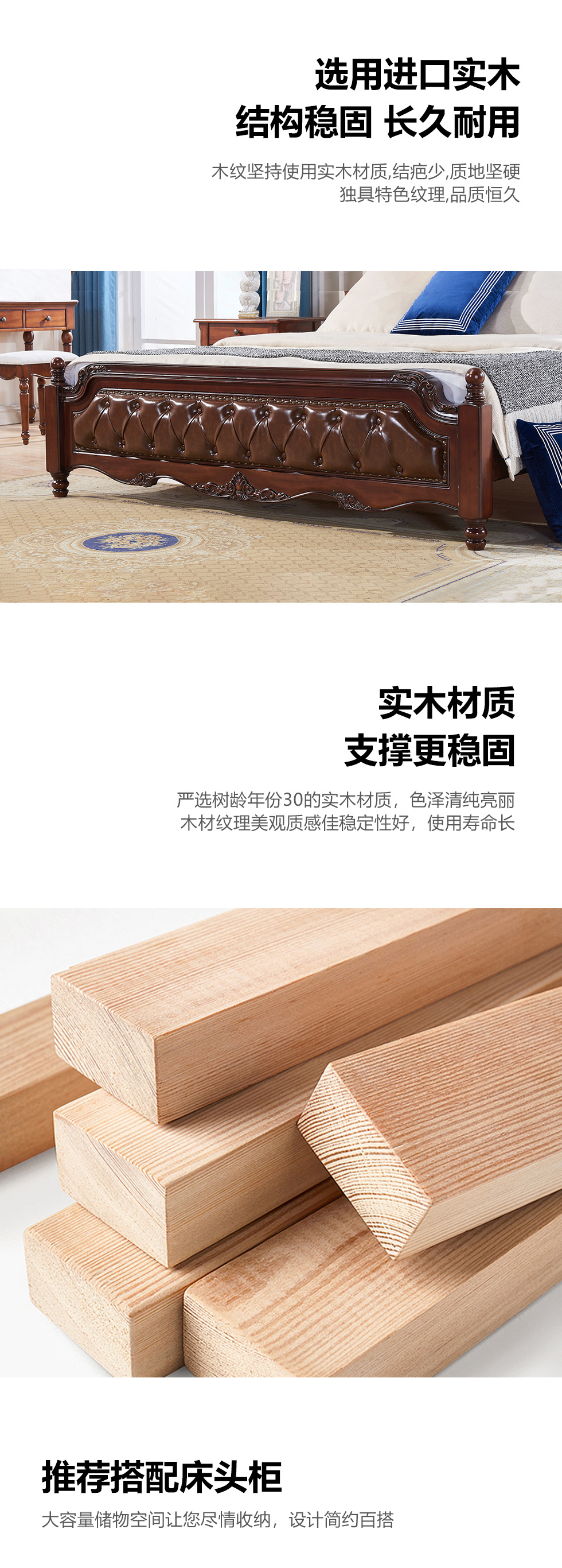 多纳宝 美式 美式 鹅掌楸木+脚柱橡胶木 1.8米床¥6502