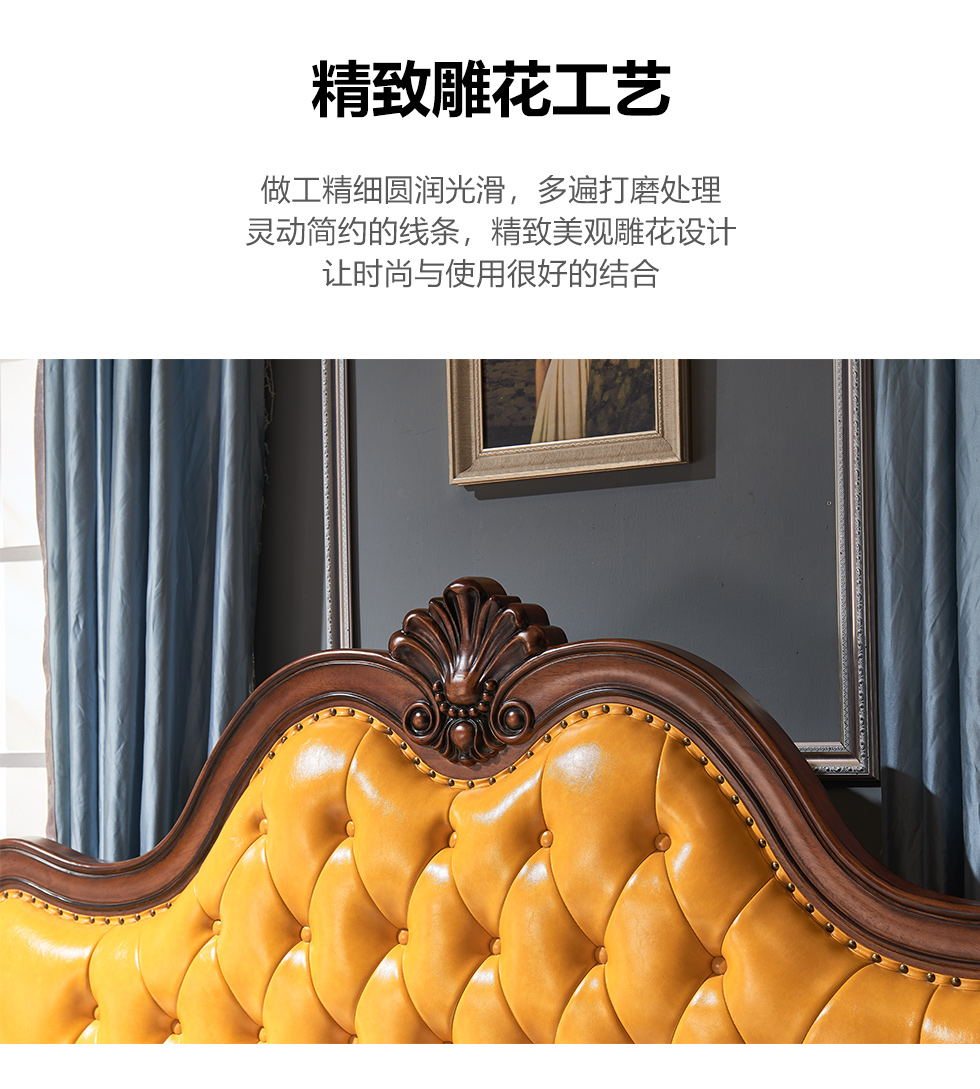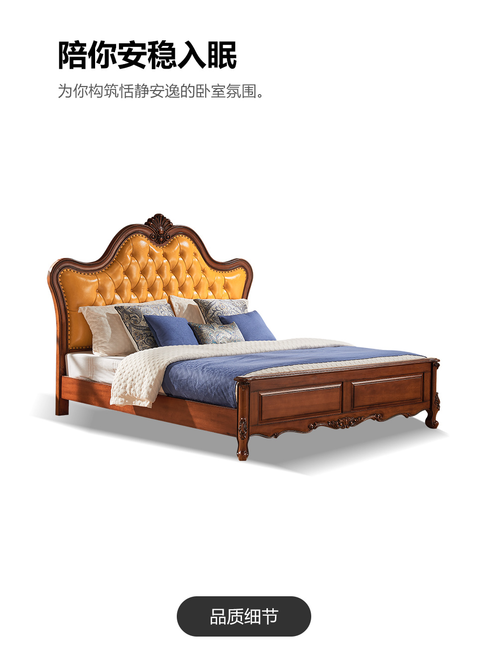 多纳宝 美式 美式 超纤仿真皮+高密度回弹海绵+进口实木 1.8米床¥7913