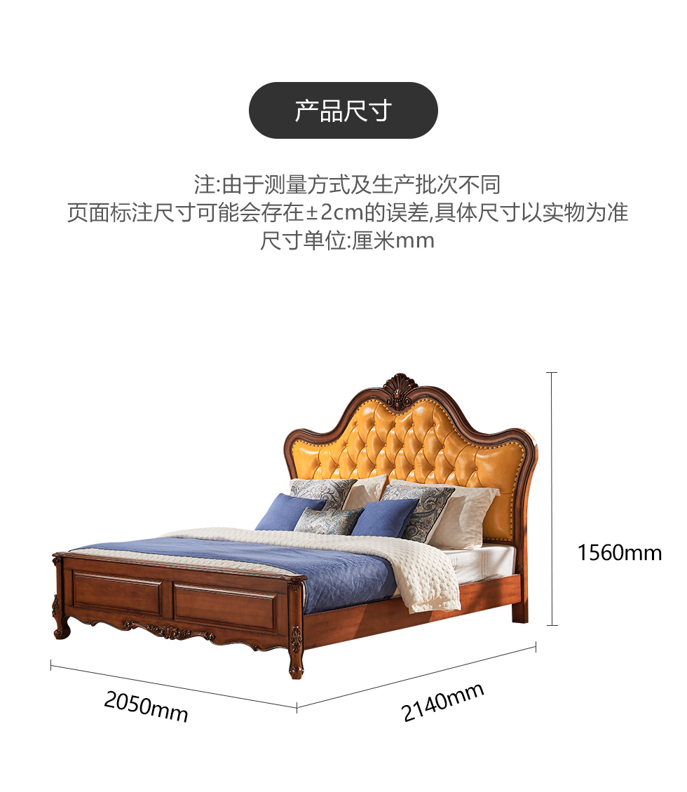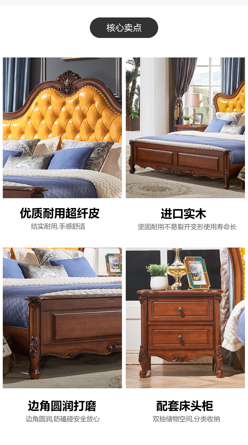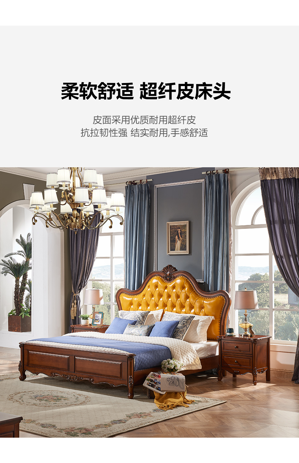 多纳宝 美式 美式 超纤仿真皮+高密度回弹海绵+进口实木 1.8米床