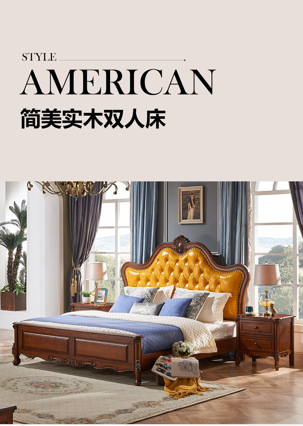 多纳宝 美式 美式 超纤仿真皮+高密度回弹海绵+进口实木 1.8米床 |
