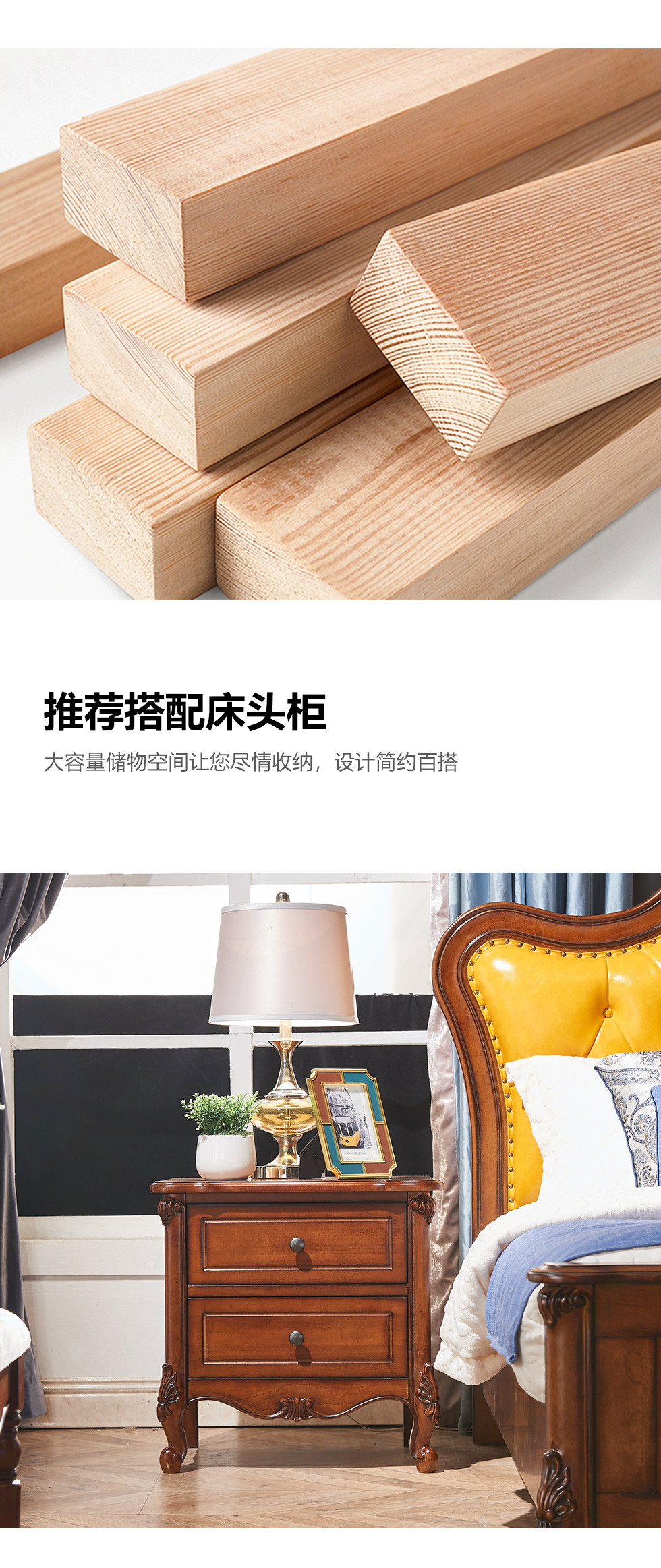 多纳宝 美式 美式 鹅掌楸木+脚柱橡胶木 1.8米床¥5830