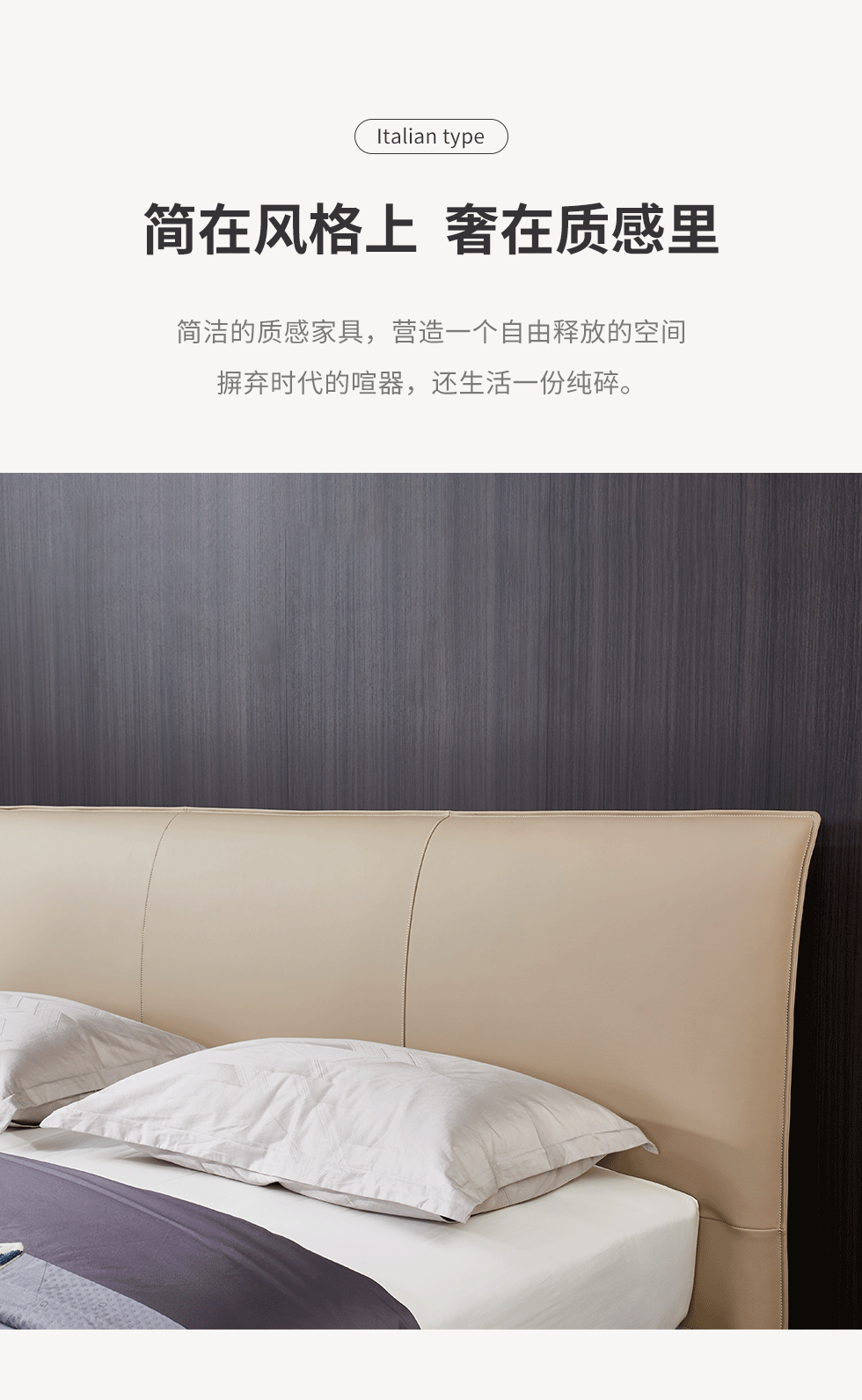 CBD家居 现代简约 接触面真皮+非接触面仿皮+云杉木实木主框架 1.8米床¥7498