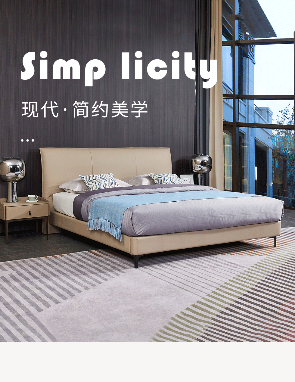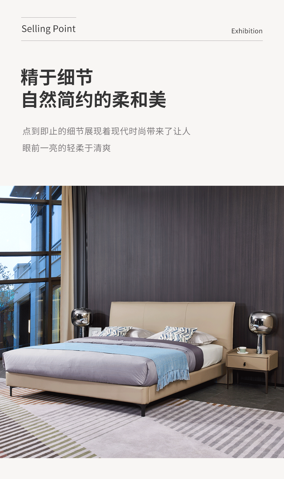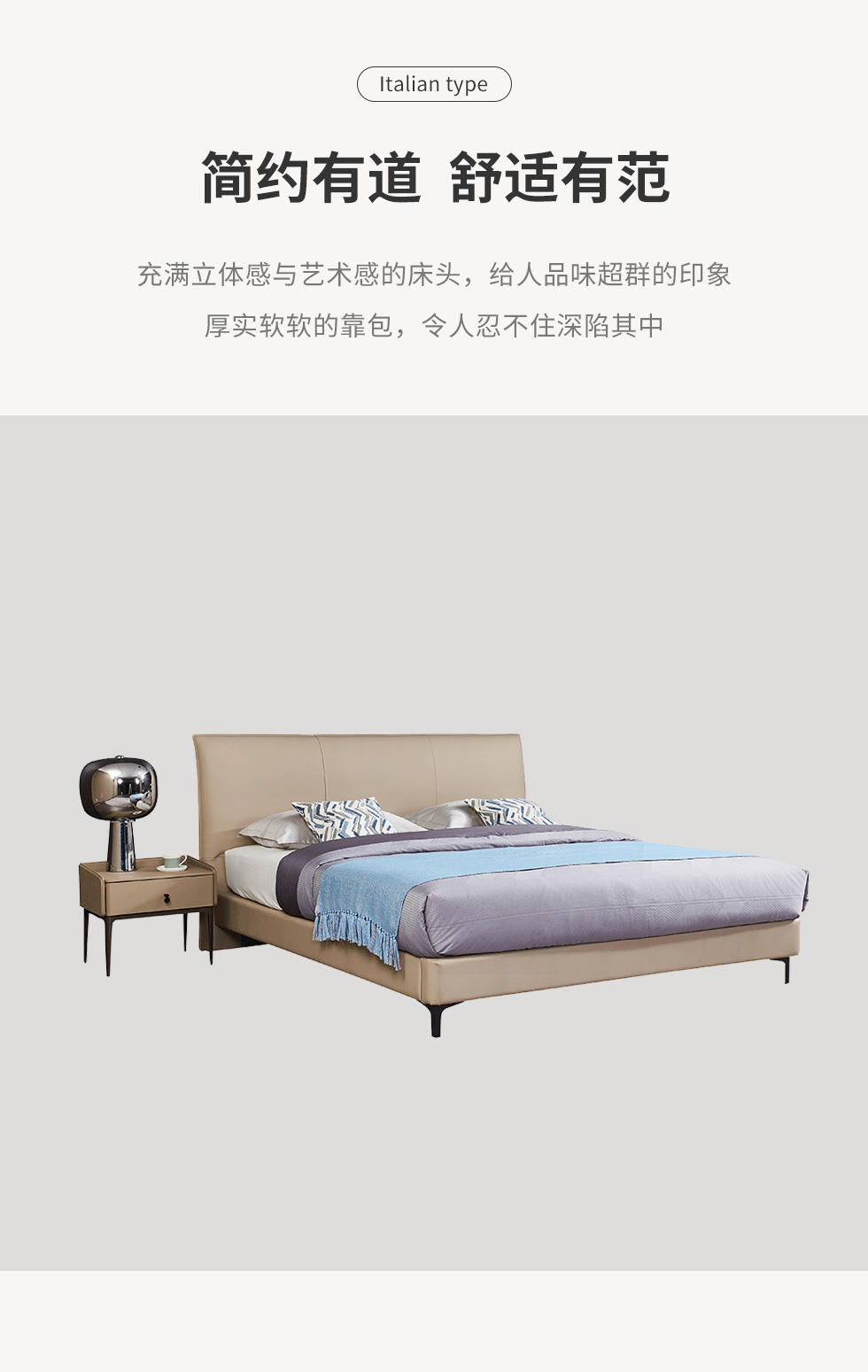 CBD家居 现代简约 接触面真皮+非接触面仿皮+云杉木实木主框架 1.8米床¥7498