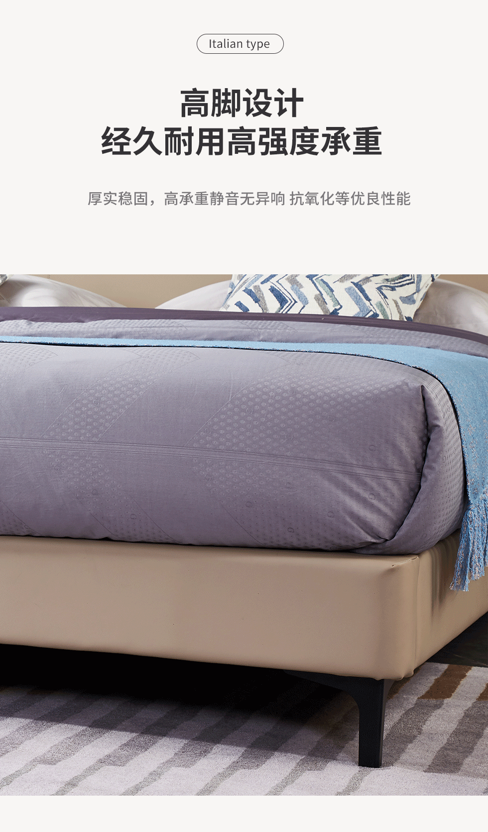 CBD家居 极简 接触面真皮+非接触面仿皮+东亚海绵+云杉木实木主框架+分体卷帘式排骨条 TE97镍灰 1.8米床架¥7666