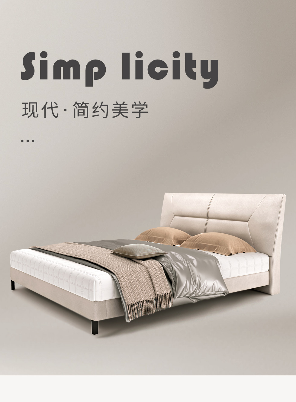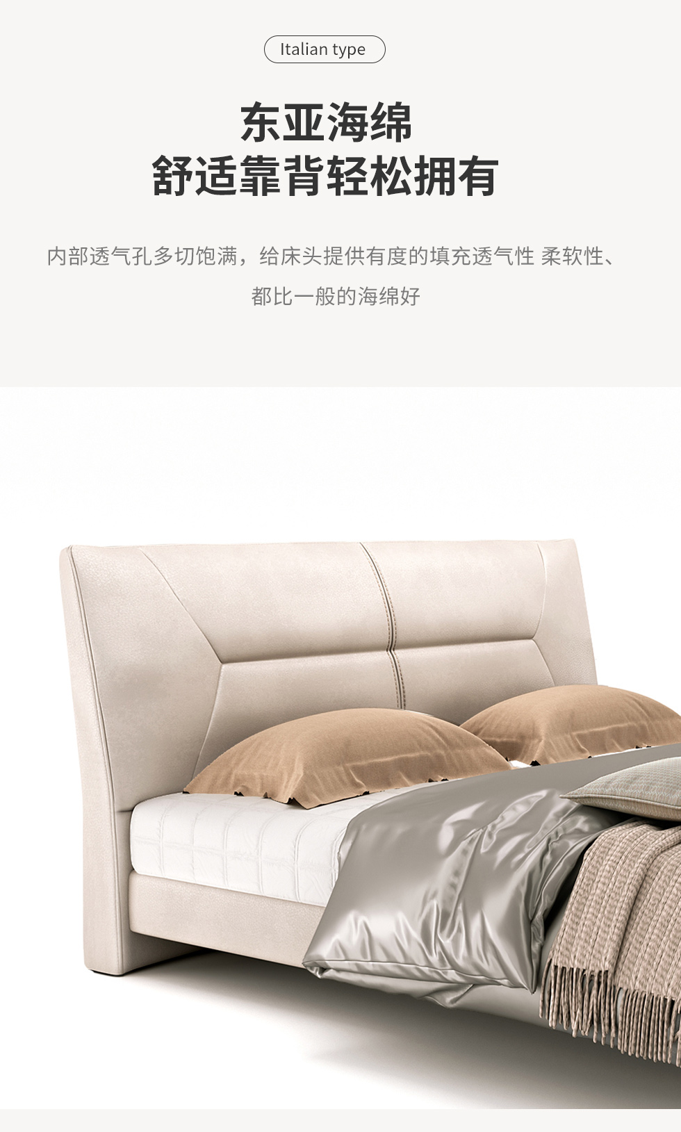 左右家居 现代简约 接触面头层真皮+松木内架+高回弹海绵填 1.8米床¥6576
