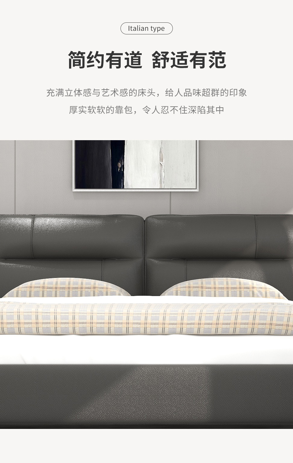 左右家居 现代简约 接触面头层牛皮+全实木框架+碳素钢五金脚+钢木排骨架 1.8米软床¥7069