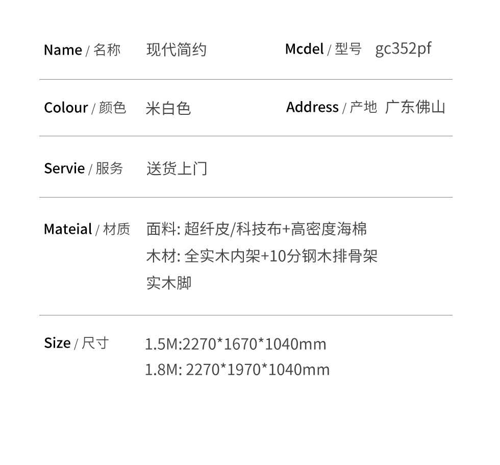 云端 奶油风 超纤皮+高密度海棉 米白色 1.8米床