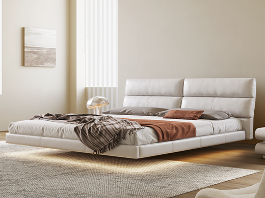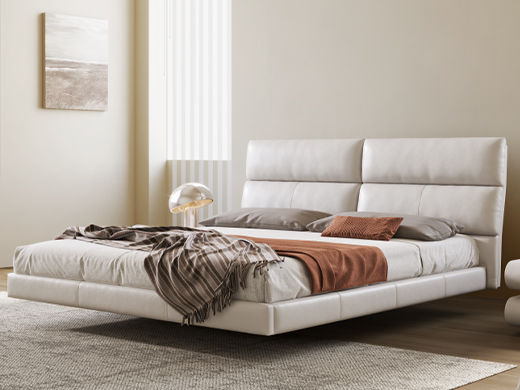 云端 奶油风 超纤皮+高密度海棉 米白色 1.8米悬浮床